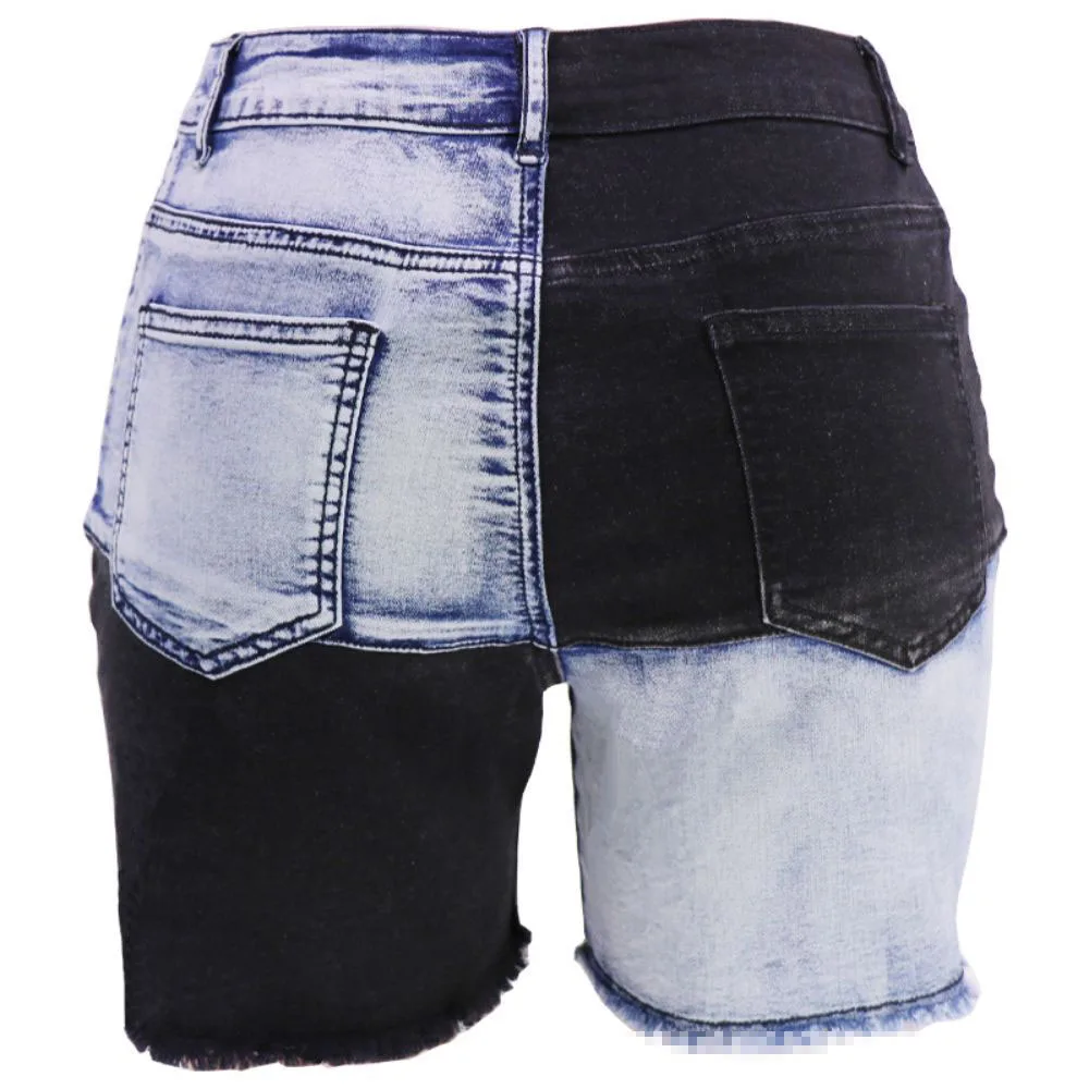 2023 Summer Fashion New Casual Color Collision High Waist Retro Pocket Denim Shorts for Women