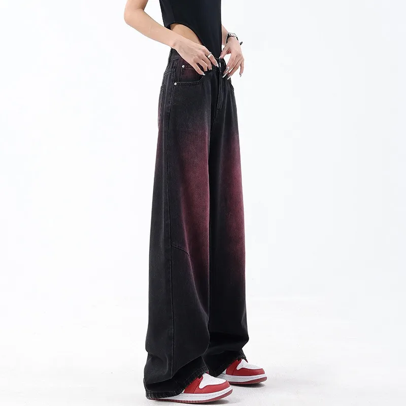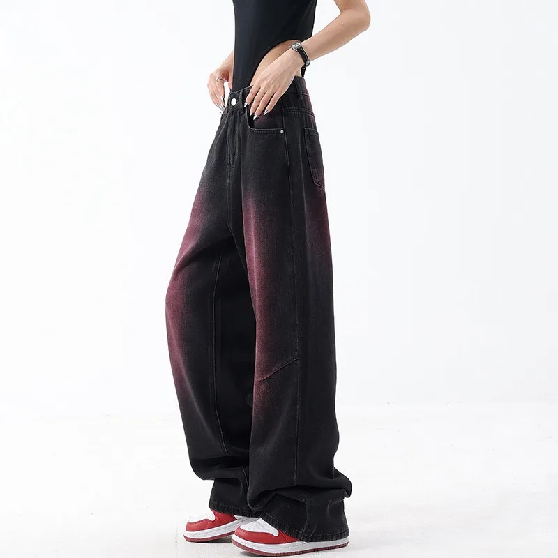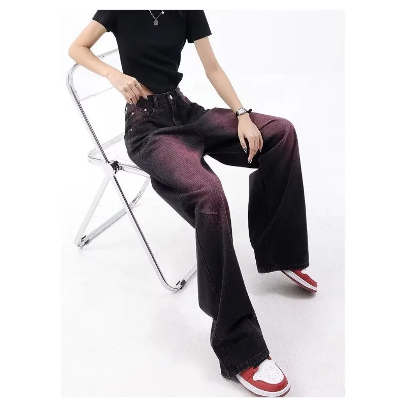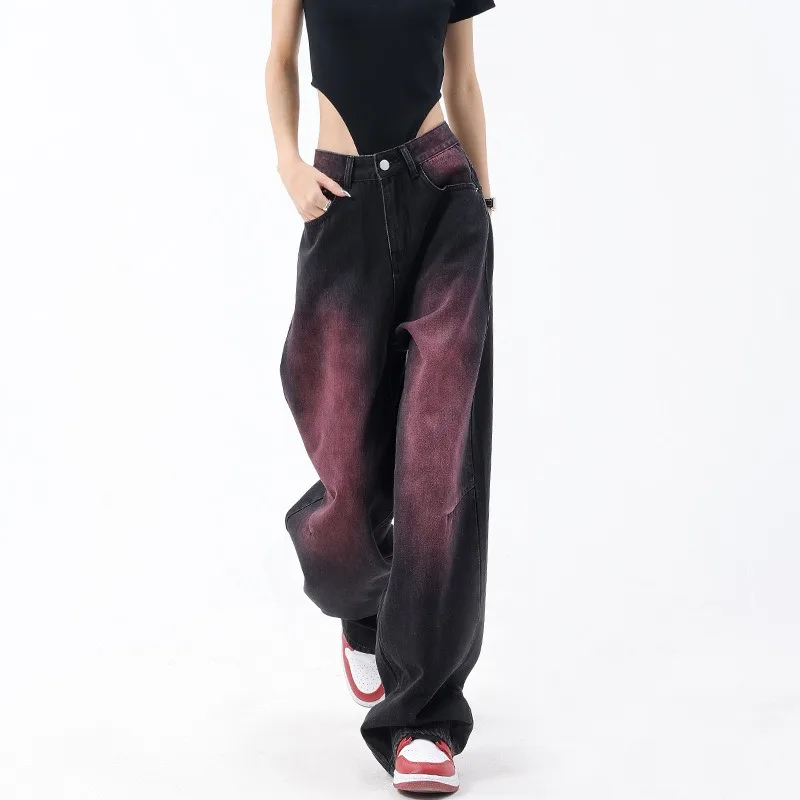 American Retro Spring and Summer New Graffiti Wash Water Jeans Women's Retro Design Sense Straight Leg Wide Leg Pants