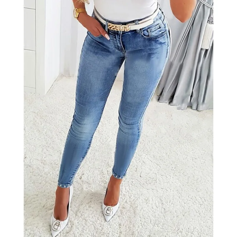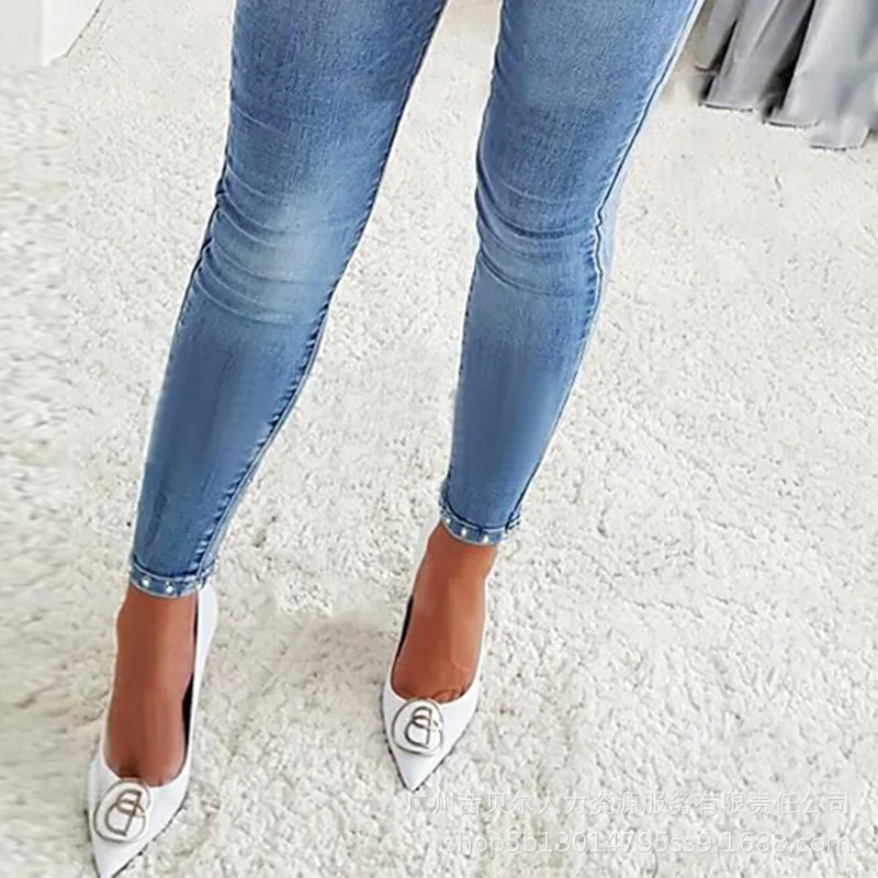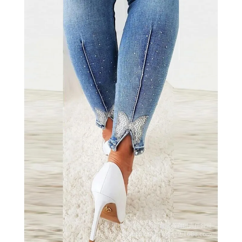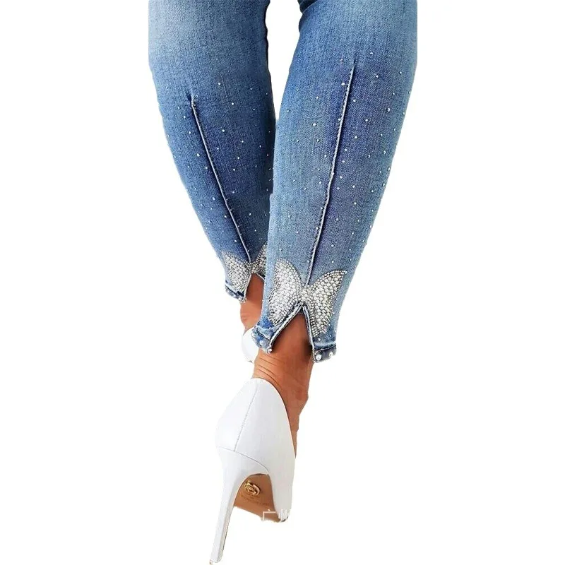 New Arrivals Retro Fashion Trend Spring Summer Women's Clothing Solid Color Rhinestone Beaded Bowknot Split Tight Jeans