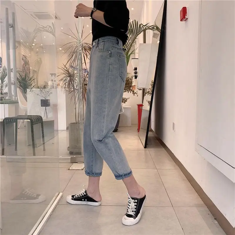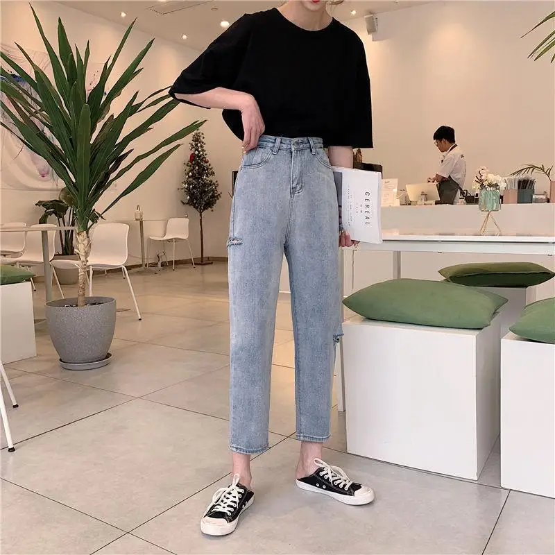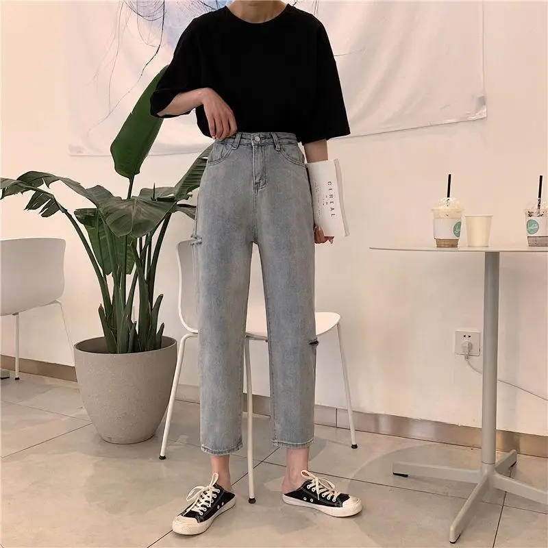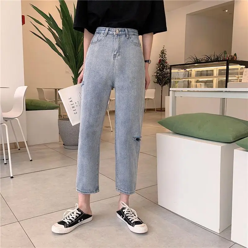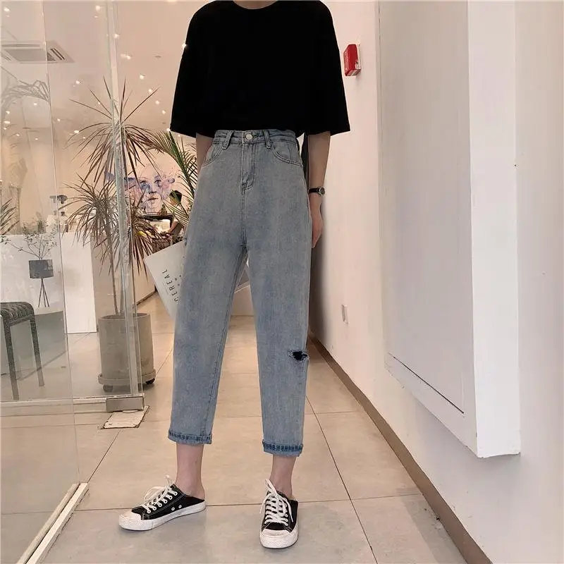 Name | Ladies Harlan Ripped Jeans Summer Korean Loose Straight Pants All-match Casual Nine Pants Mom Jeans Boyfriend Pants |