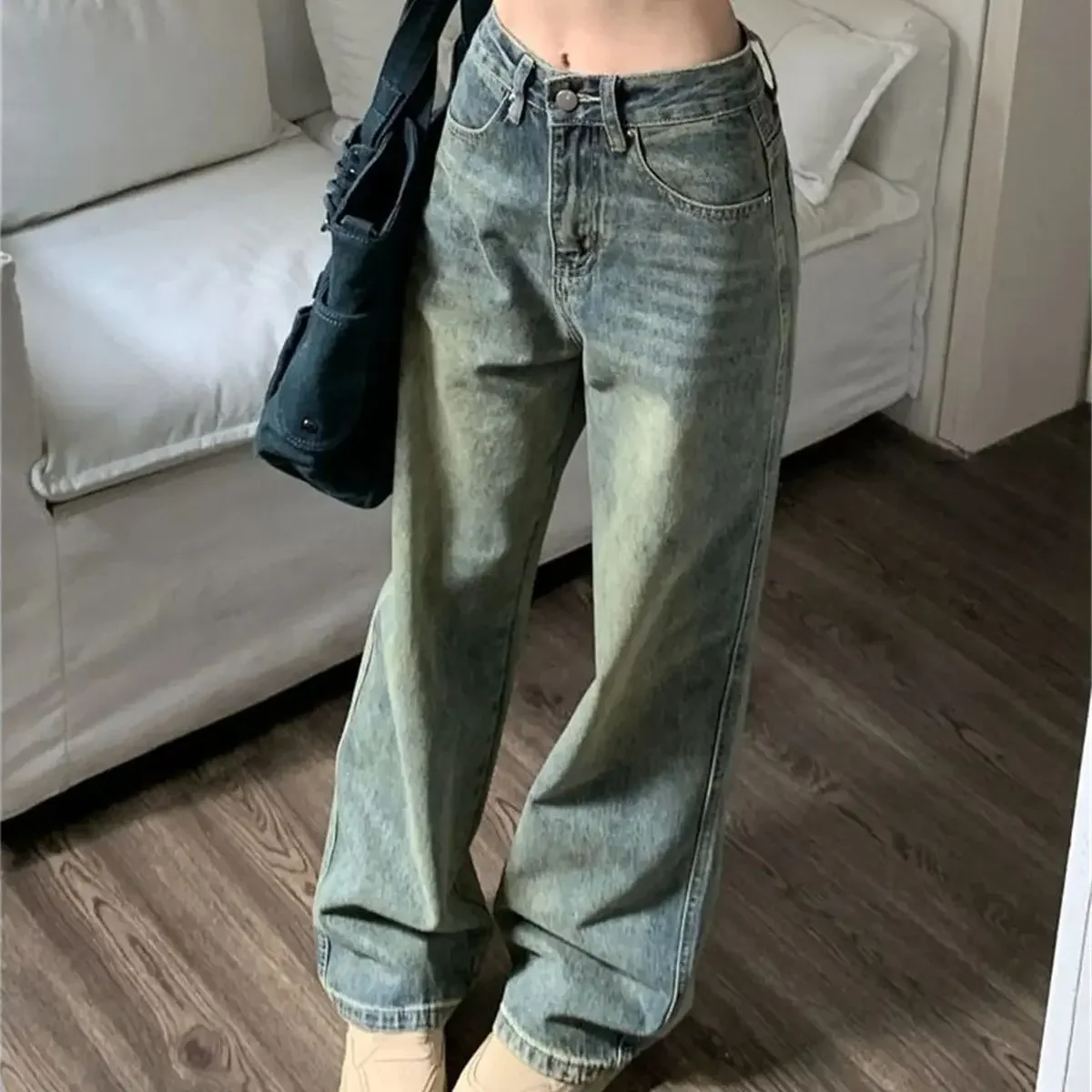 Y2k Wide Leg Women Pants Vintage Blue Jeans Casual 2024 New Washed Pant Streetwear Denim Trousers Femme Baggy Clothes Chic Basic