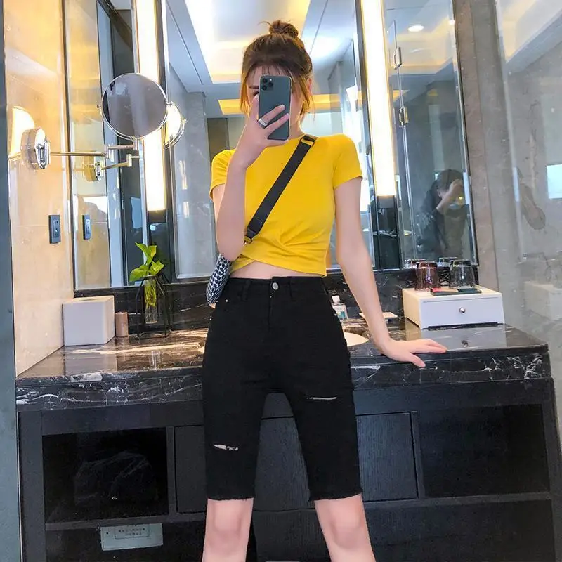 Ripped Jeans Shorts for Women Fashion Summer Half Women Denim Shorts High Waist A Line Loose Female Short Jeans Streetwear