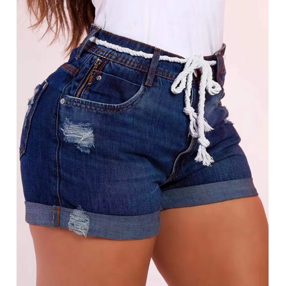 Short Jeans Women Patchwork Design Ripped Skinny Denim Short Pants Summer Zipper Lace-up Zip Ripped Denim Shorts