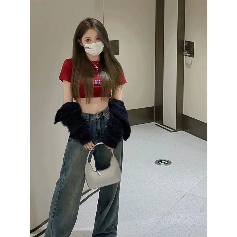 Vintage Wide Leg Cargo Jeans Women 2023 Autumn High Waist Bagge Pants Woman Y2K Streetwear Loose Denim Trousers Female
