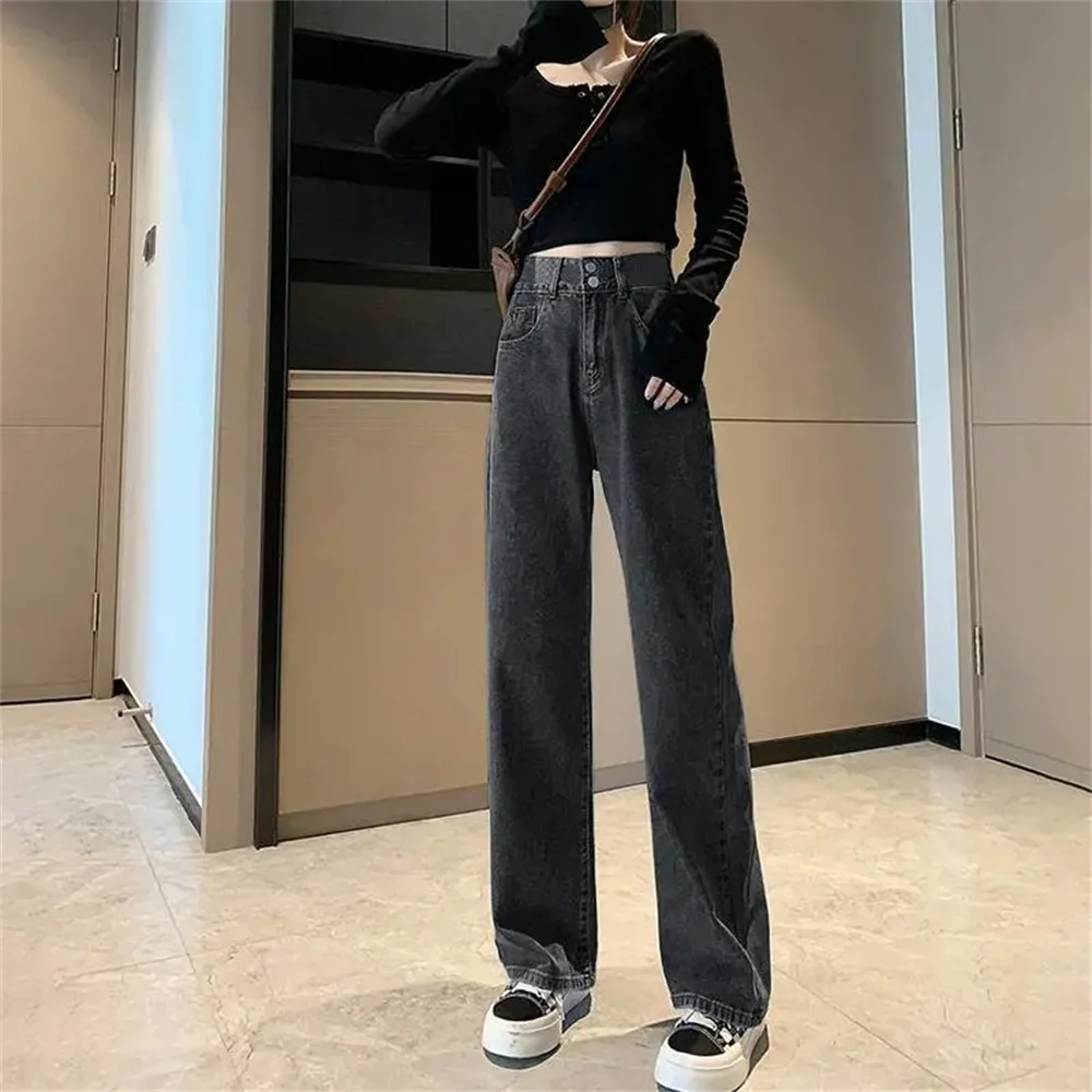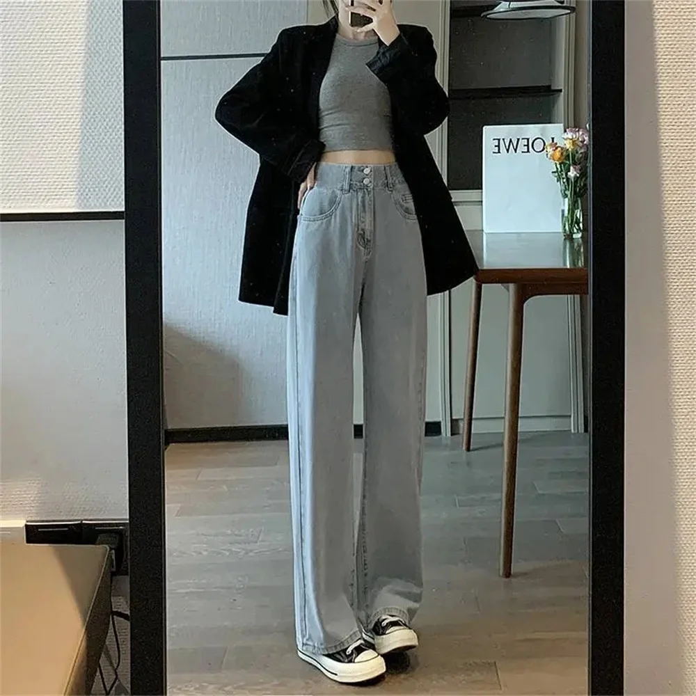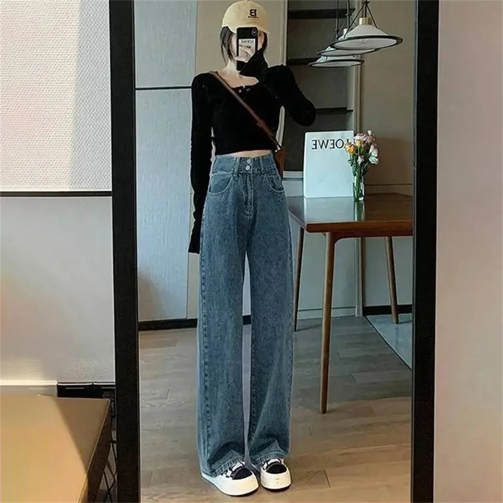 Women's High Waist Wide Leg Relaxation Jeans Summer Thin Vintage Straight Leg Pants Fashionable Floor Mopping Jeans