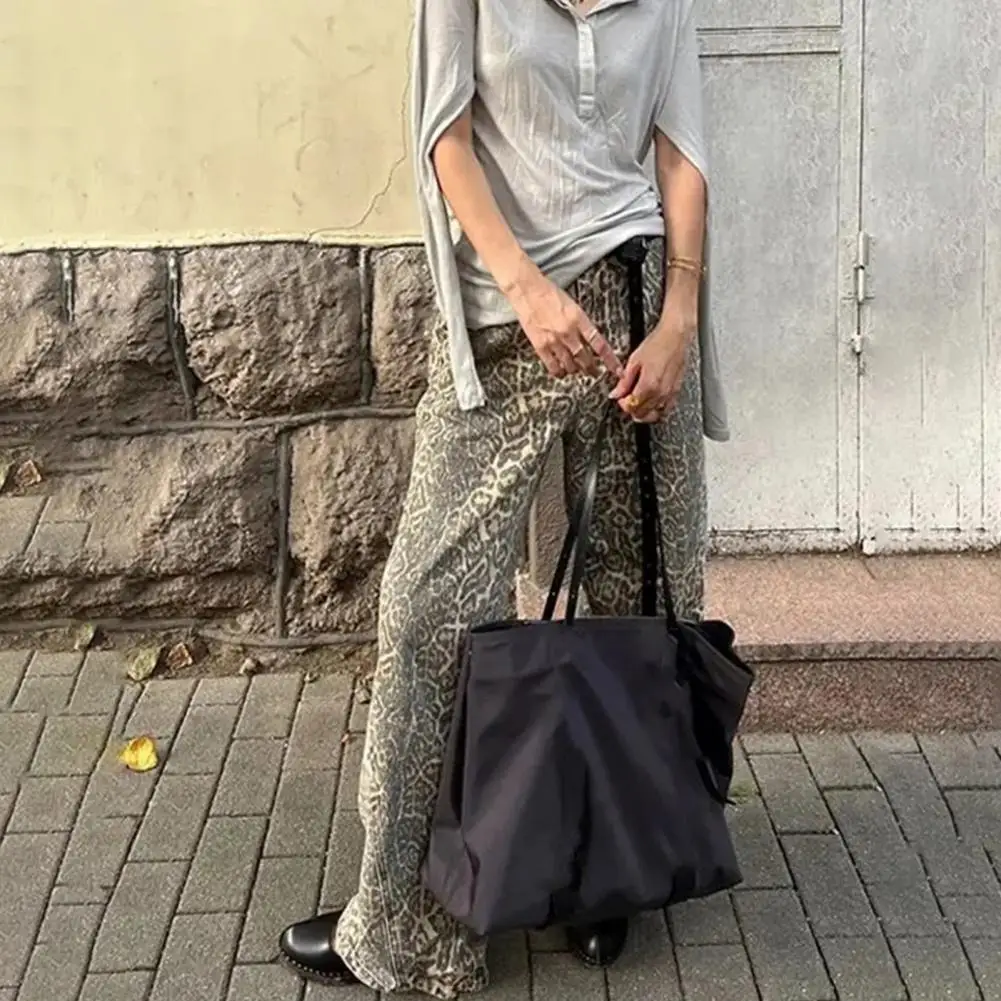 Leopard Patterned Jeans Leopard Print Wide Leg Jeans for Women Men Retro Streetwear Denim Trousers with Hop Pockets Zipper