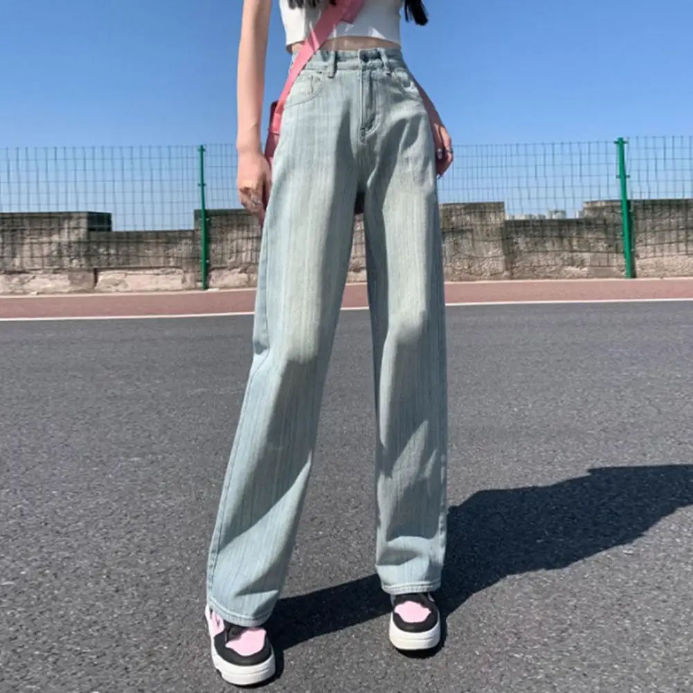 Women Pants Striped Wide Leg Jeans with High Waist Multi Pockets for Women Stylish Streetwear Pants for Wear Long Trousers Loose