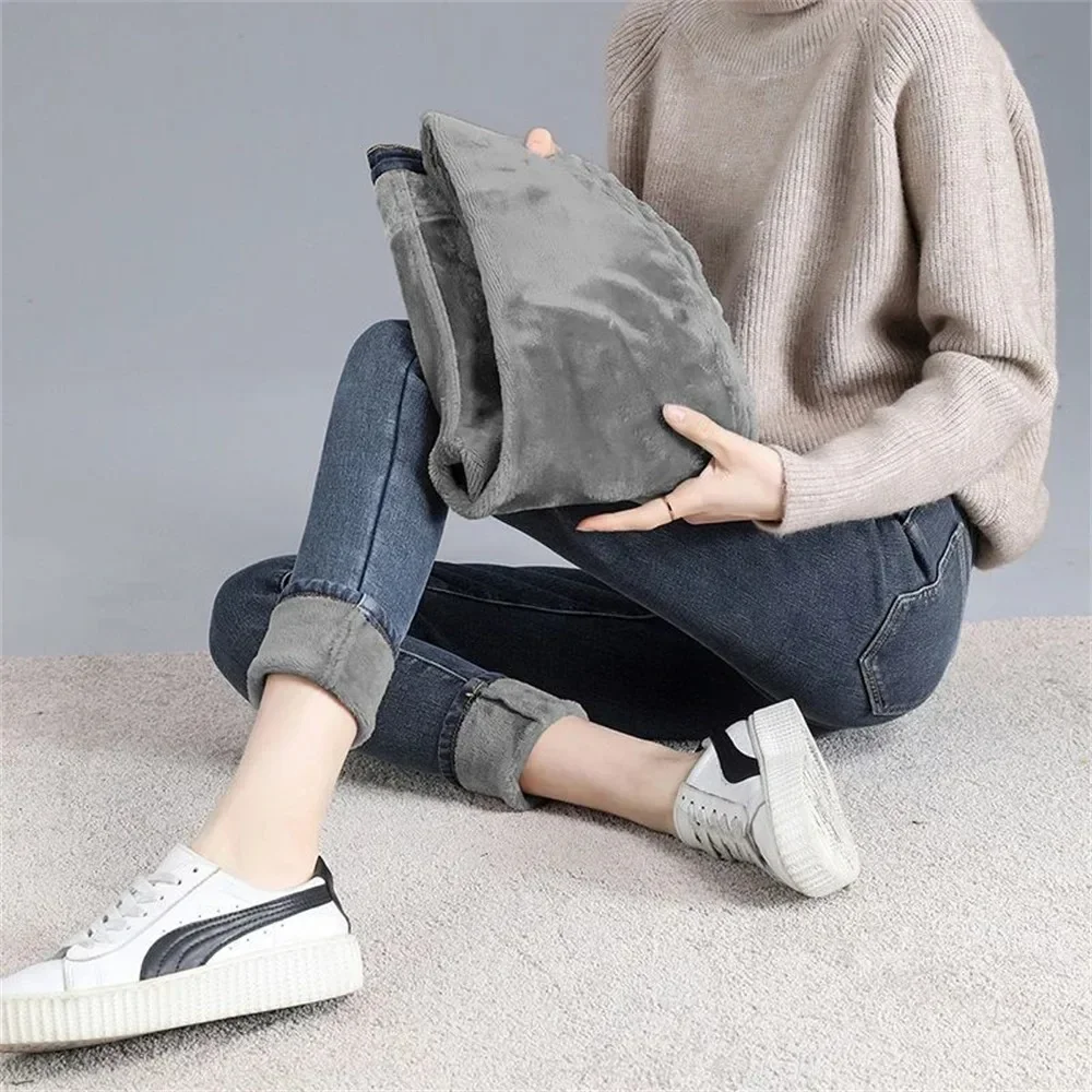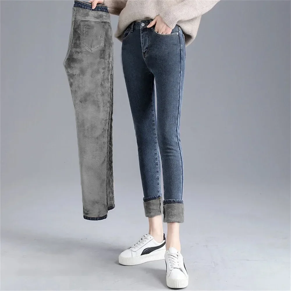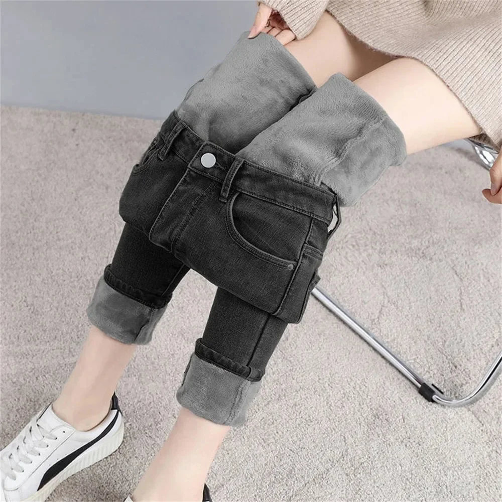 Name | 2024 New Winter Mid Waist Skinny Warm Jeans Women Plus Velvet Ankle Length Casual Thick Pencil Pants Basic Fleece Denim Women |