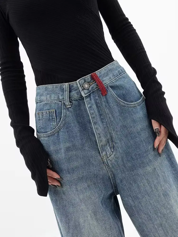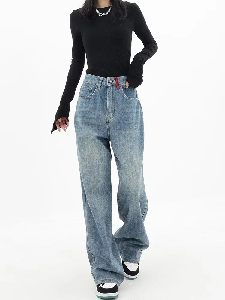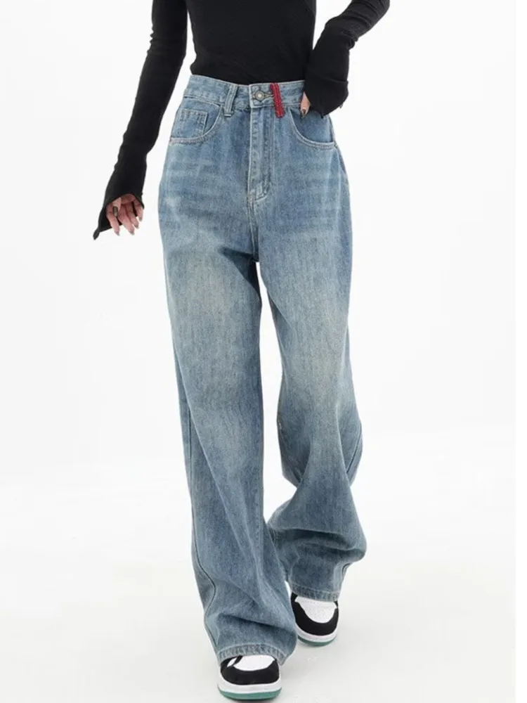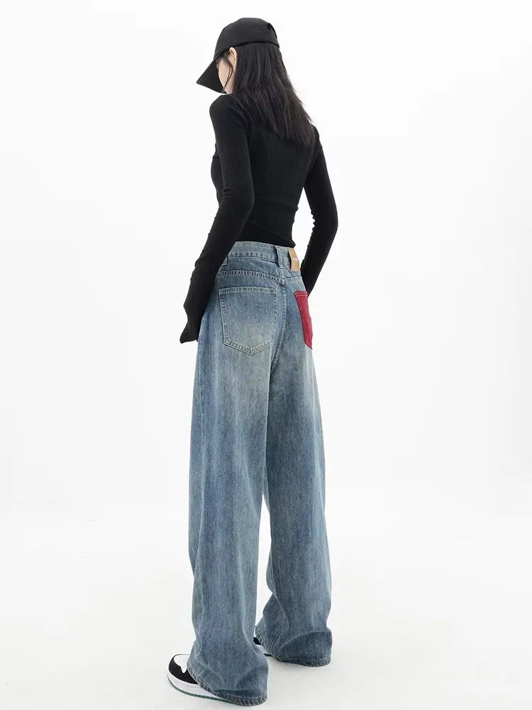 Trendy Spring And Autumn New Design Sense Spliced Jeans Loose Wide Leg Straight Barrel High Waist Pants Women's Jeans