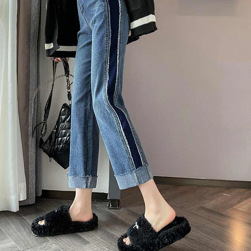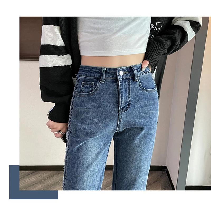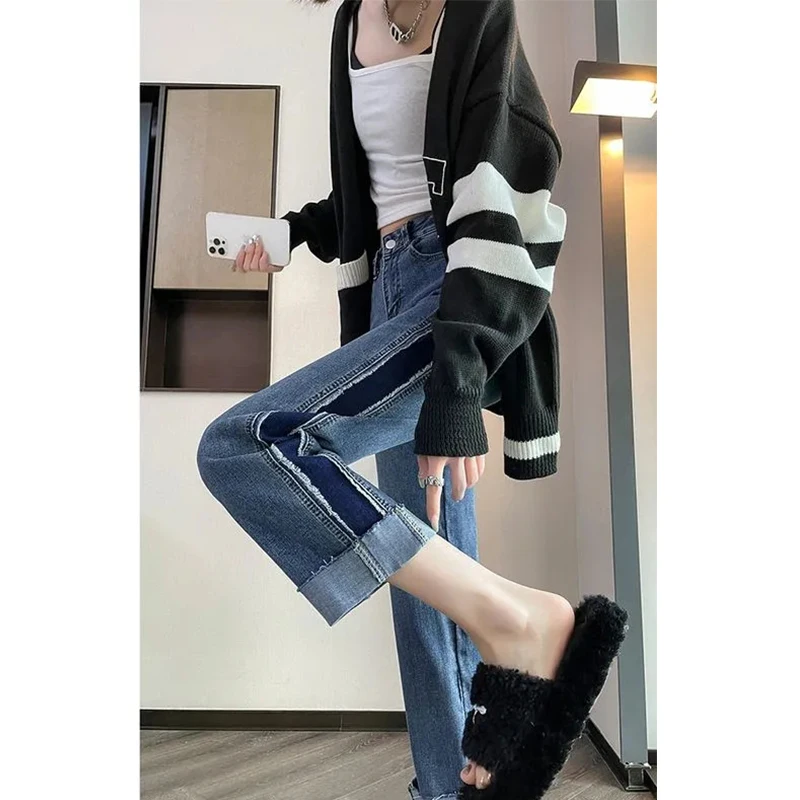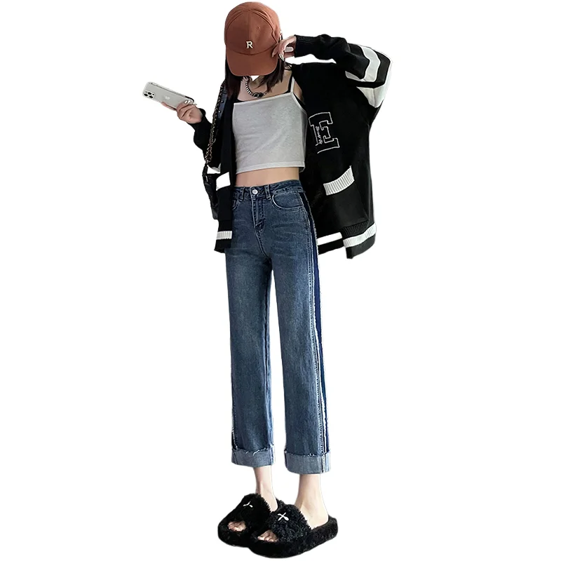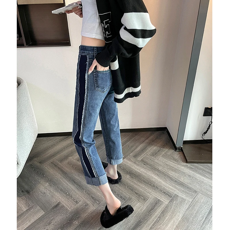 Name | Y2K Spring Color Blocking Straight Pants Women's Jeans 2024 Hundred High Wais Pant Korean Nine Points Straight Jeans |