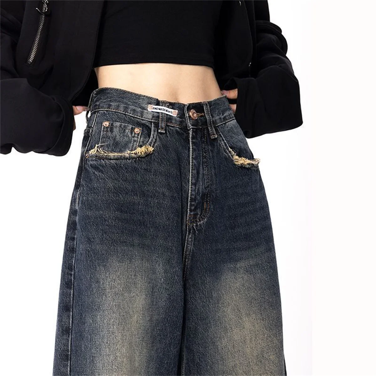 Women High Waist Jeans Harajuku Streetwear Retro Fashion Autumn Loose Wide Leg Straight Loose Denim Trousers Y2K Baggy Pants