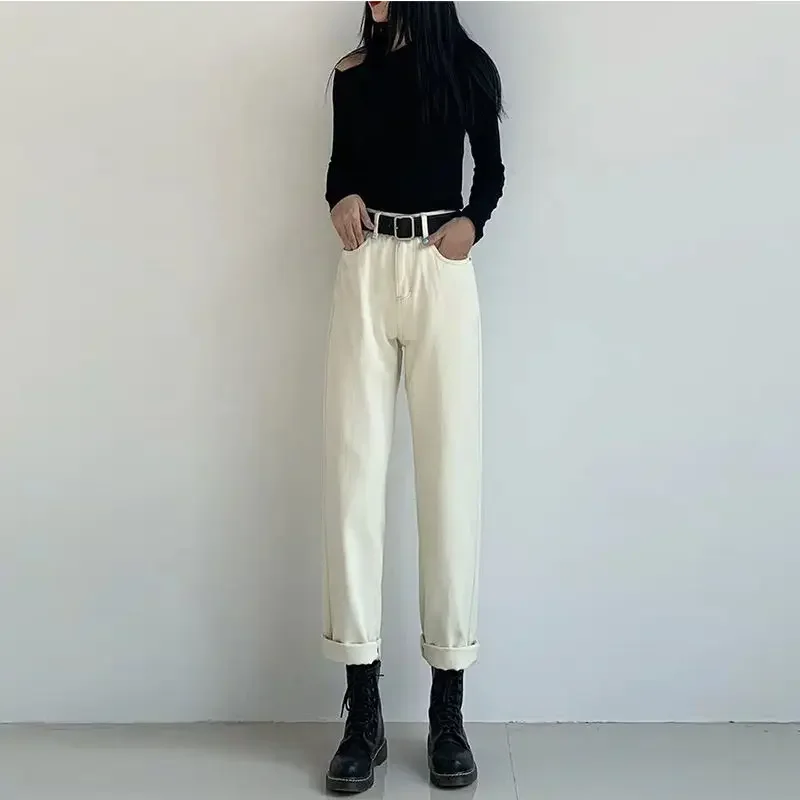 Name | Woman Jeans Pants Loose Straight Autumn And Winter High Waist Jeans White Pants Pantalones Vaqueros Mujer |