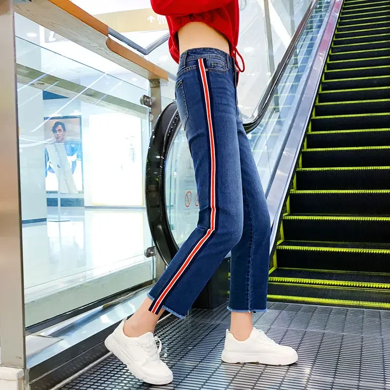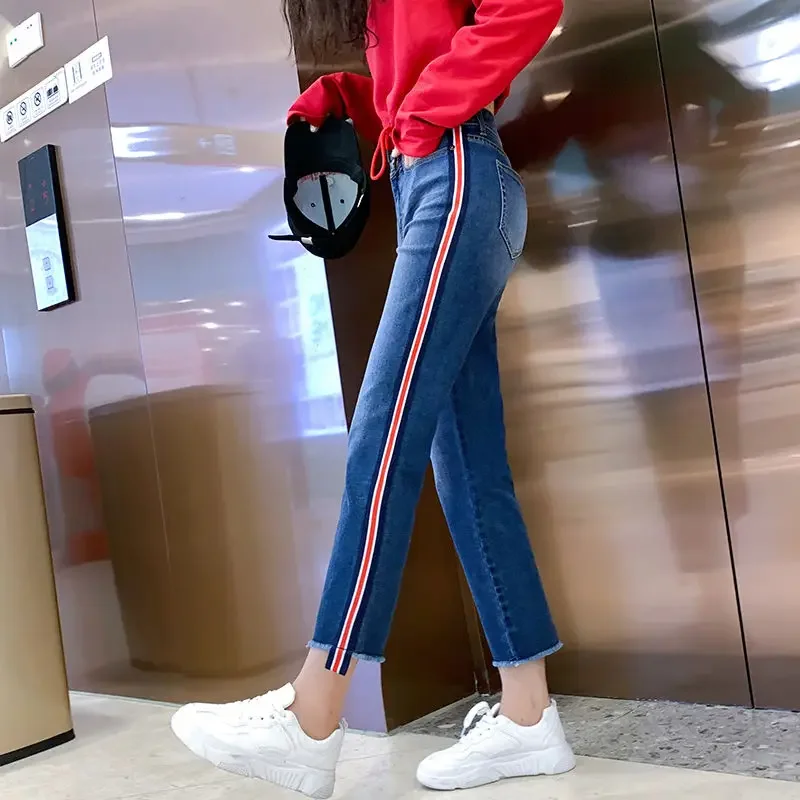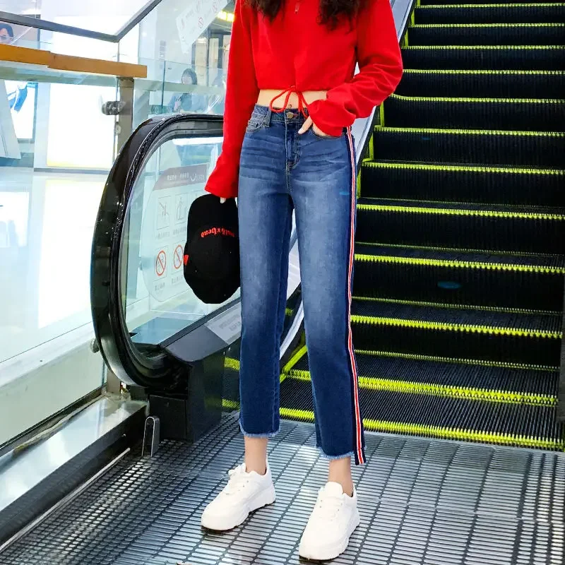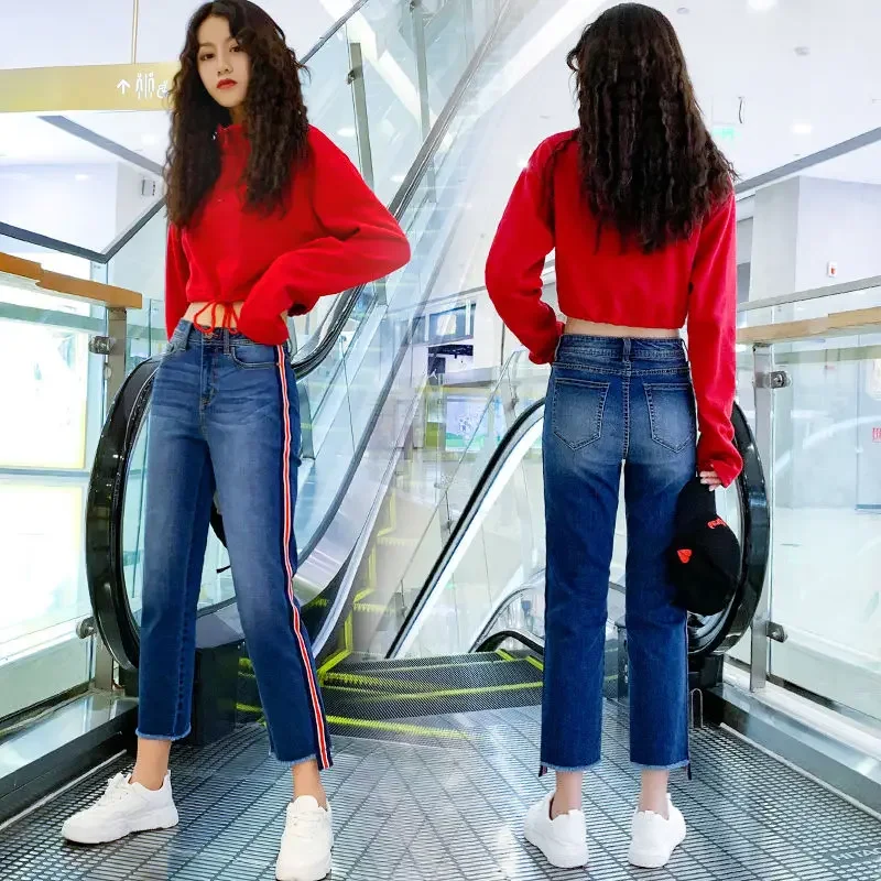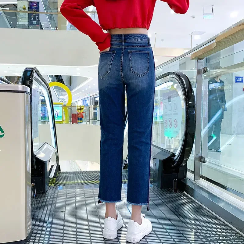 Name | Woman Jeans Pants High Waist Straight Side Tape Pants White Pants Pantalones Vaqueros Mujer |