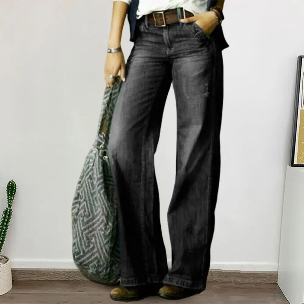 Mid-rise Straight Leg Jeans Women Wide Leg Jeans Vintage Style Women's Straight Leg Jeans with Distressed Details Multiple for A