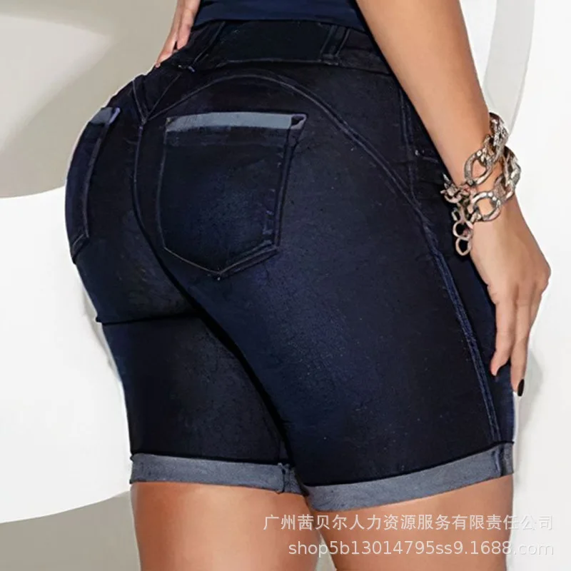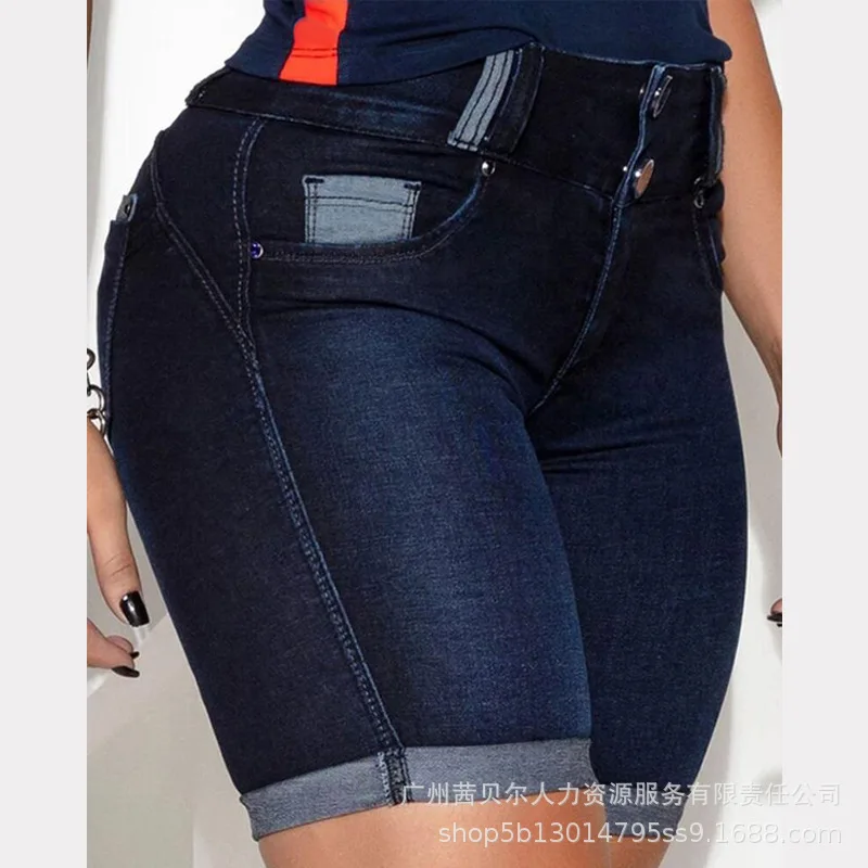 2023 Y2K INS Clothes Vintage Button High Waist Elastic Hip Lift Skinny Short Jeans Pocket Denim Shorts for Women