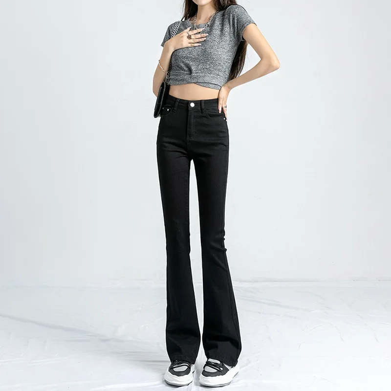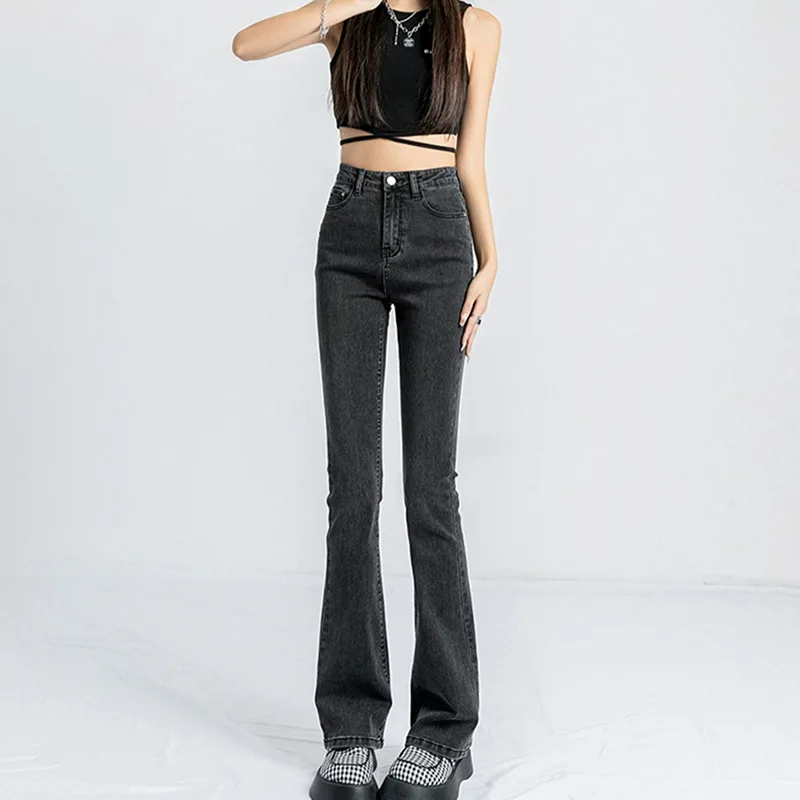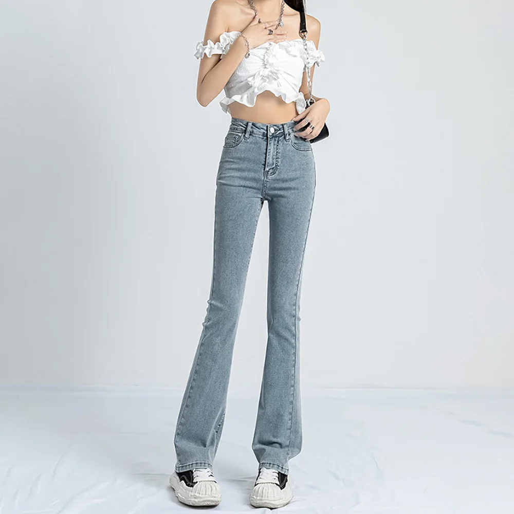 Name | American Vintage Denim Flare Pants Women Spring Autumn Empire Waist Zipper Slim Jeans Fashion All-matched Pants |
