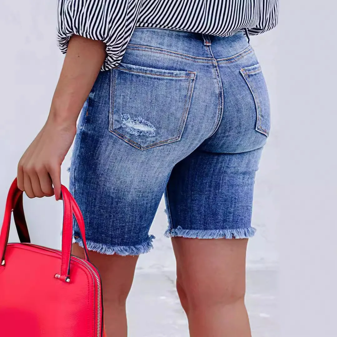 Name | Women Fashion Fringed Short Jeans Casual Denim Pants Casual High Waisted Streetwear Cowboy Ripped Jean Pantalones De Mujer 2024 |