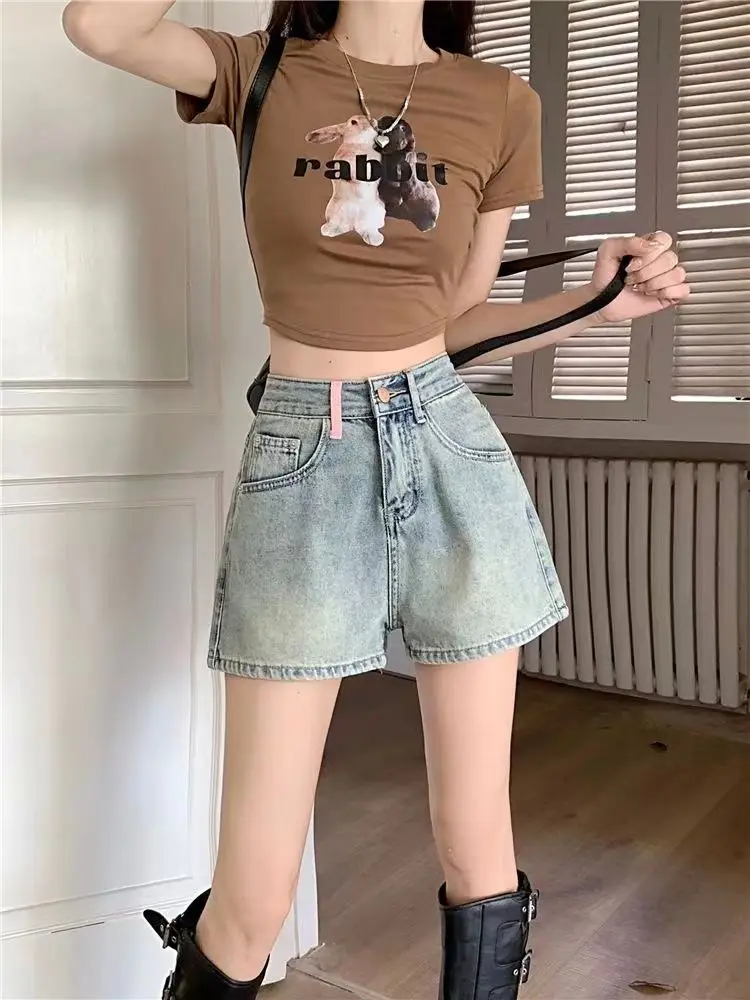 Vintage Embroidery Denim Shorts Women Summer Basic Simple All-match High Waist Short Pant Ladies Streetwear Chic Classic Ins