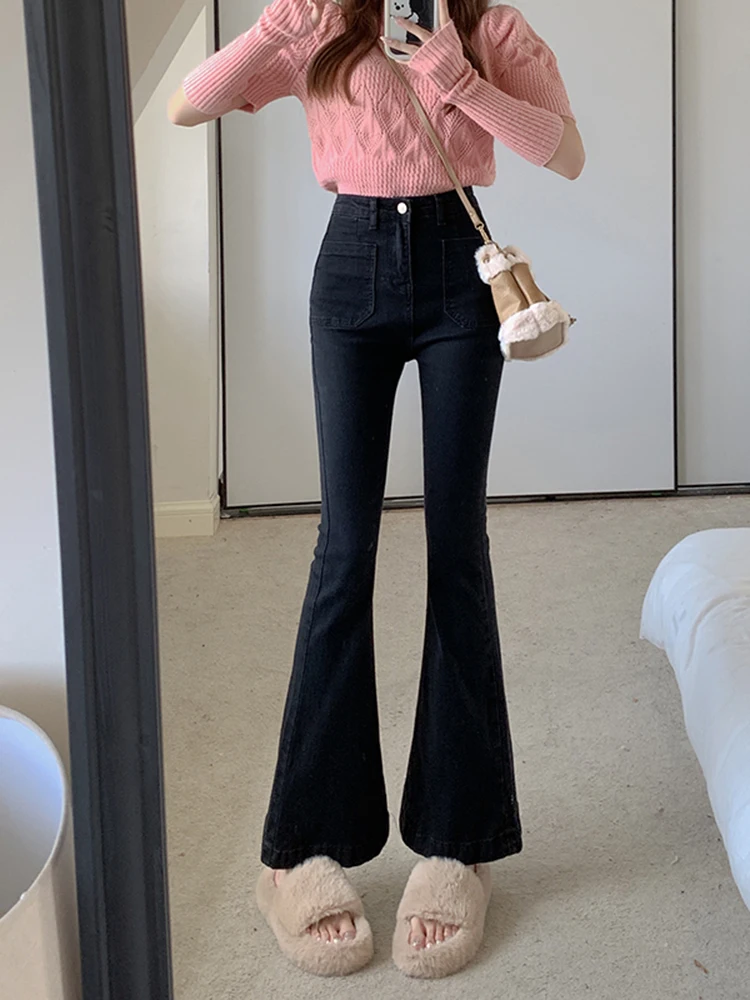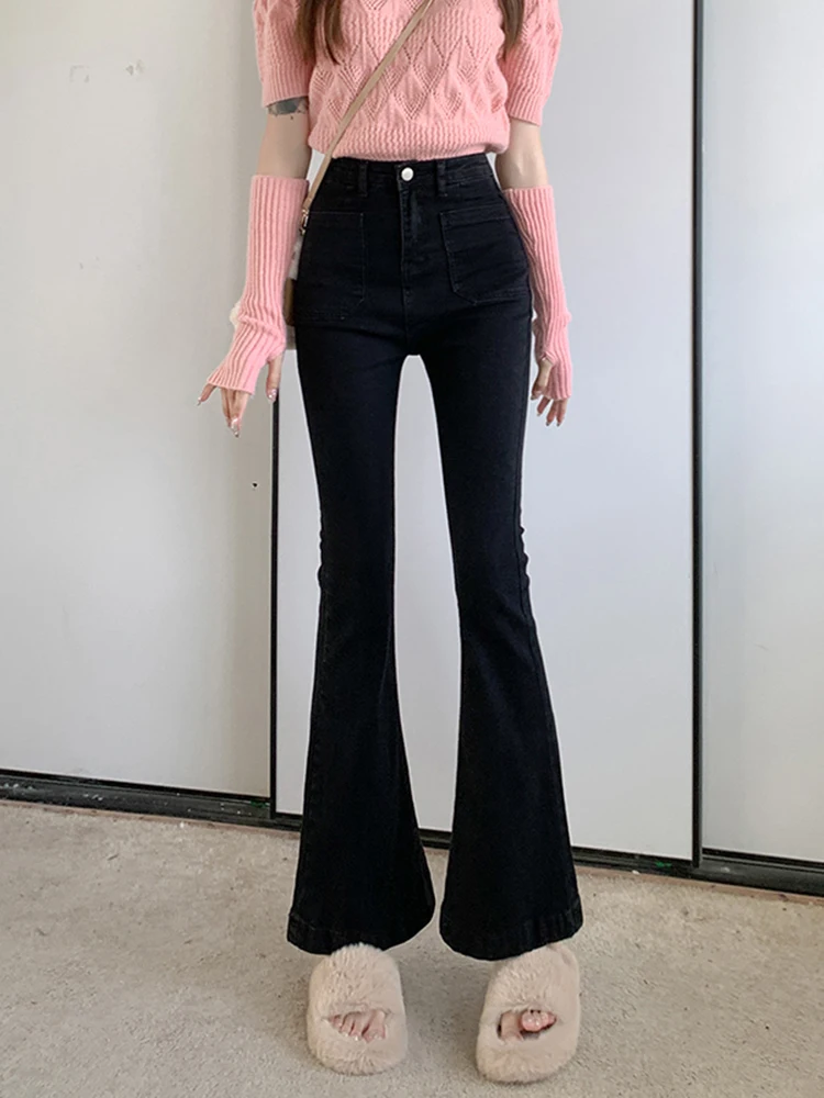 Name | Ladies Fashion High Waisted Jeans Woman Casual Streetwear Denim Trousers Female Girls Vintage Black Lim-Fit Bell-bottoms VA1232 |