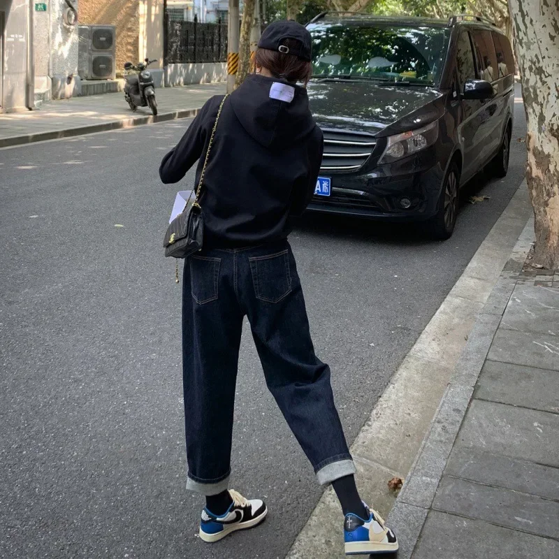 Name | 2023 Autumn Women Casual Pockets Jeans Solid Slim Fit Straight Denim Pants High Waist Regular Ladies Long Trousers Splice |