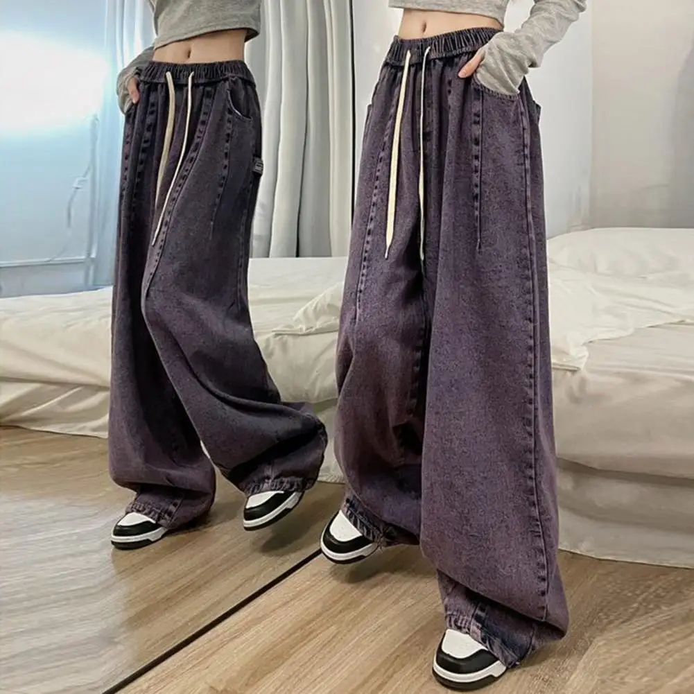 Loose Jeans Vintage Wide Leg Denim Jeans with Elastic Waist Deep Crotch Pockets Women's Streetwear Fashion for Hip for Casual