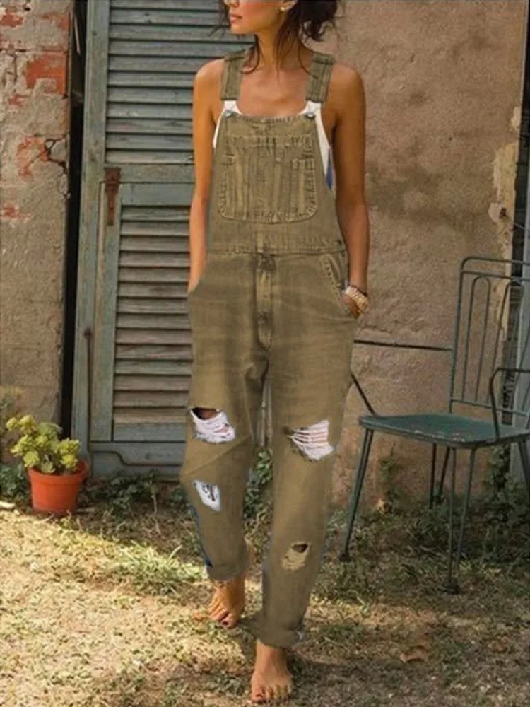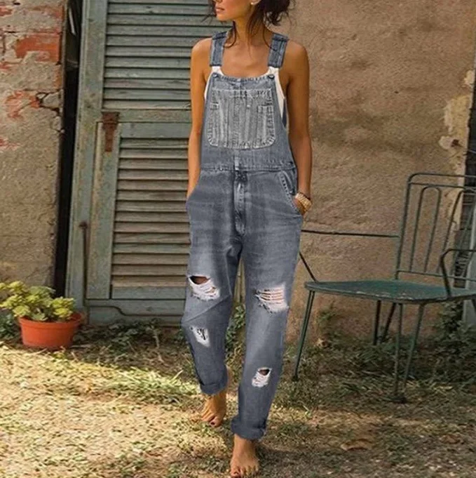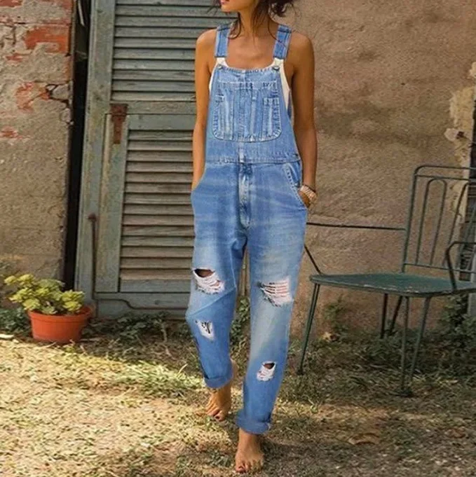 Name | Women Jeans Overalls Holes Washing Denim Mid Waist Ankle Length Straight Pants One Piece Pockets High Street Casual Sports |