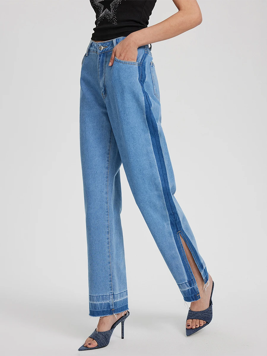 Women’s High Rise Slit Jeans Fashion Straight Wide Leg Loose Denim Pants Streetwear Trousers