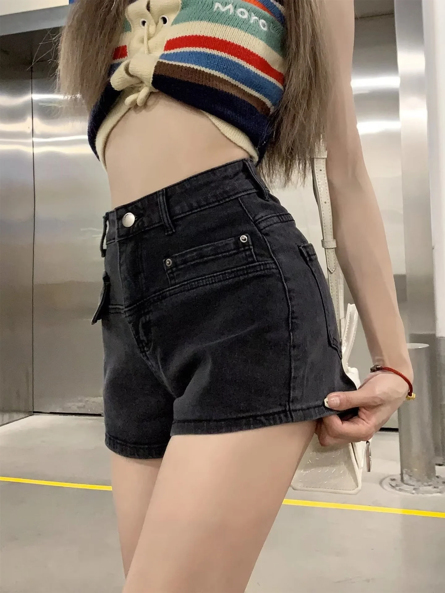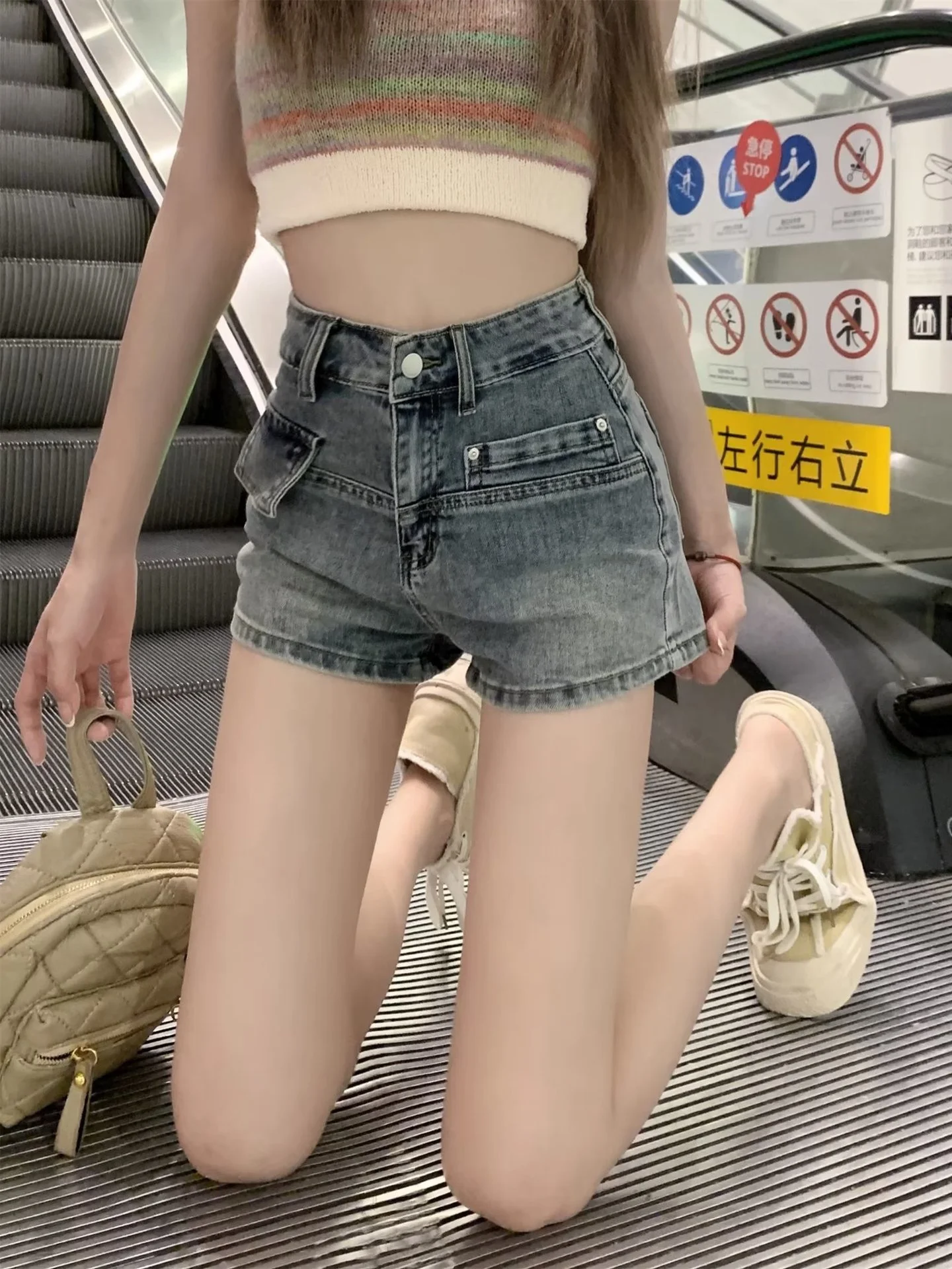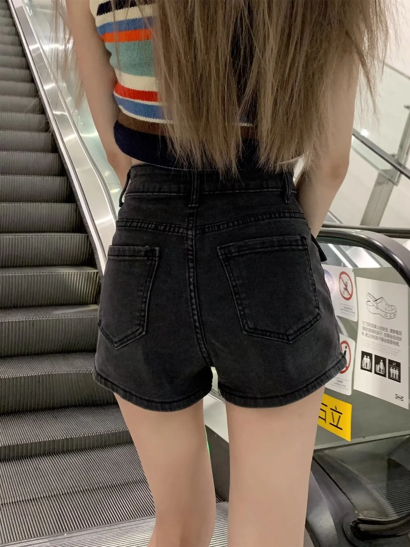 Women Summer Denim Shorts High Waist Slim A-line Straight Wide Leg High Waist Jeans A-line Skirts Streetwear