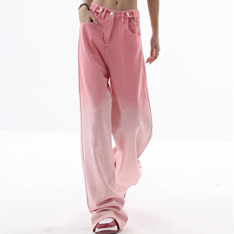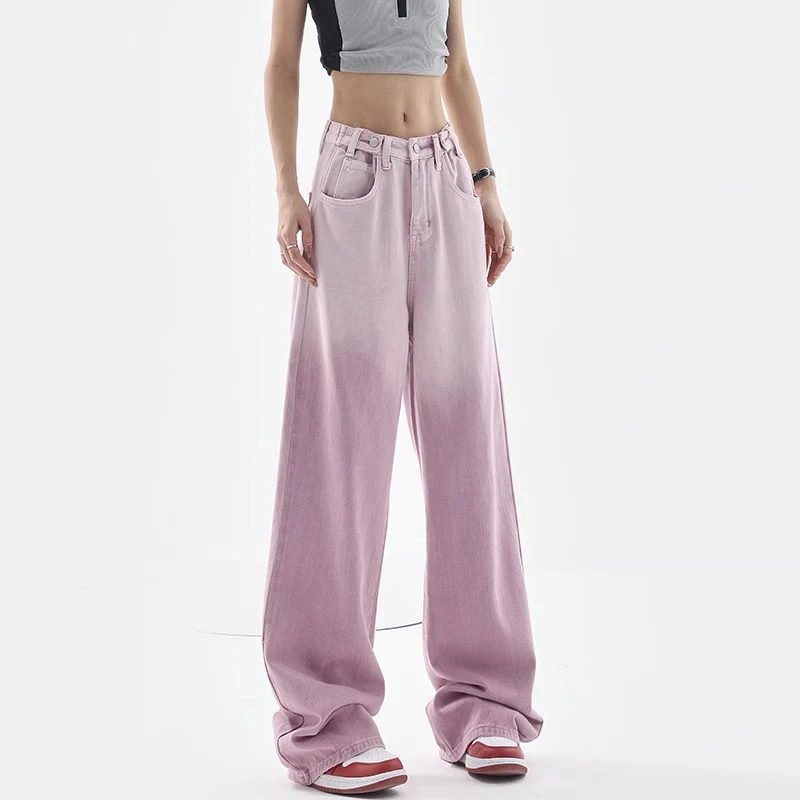 Women's Loose Jeans Y2K Washed Gradient Jeans High Waist Loose Wide Leg Pants Straight Leg Pants 2024 Street Fashion