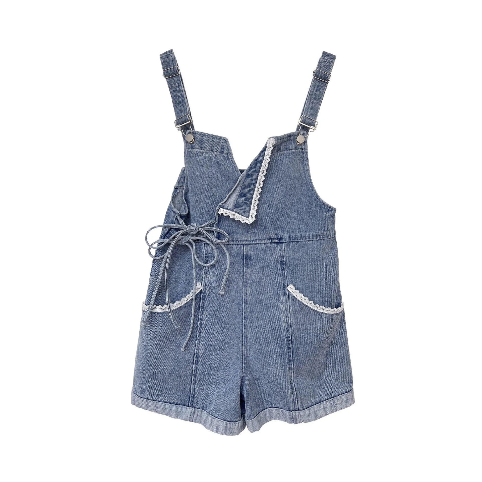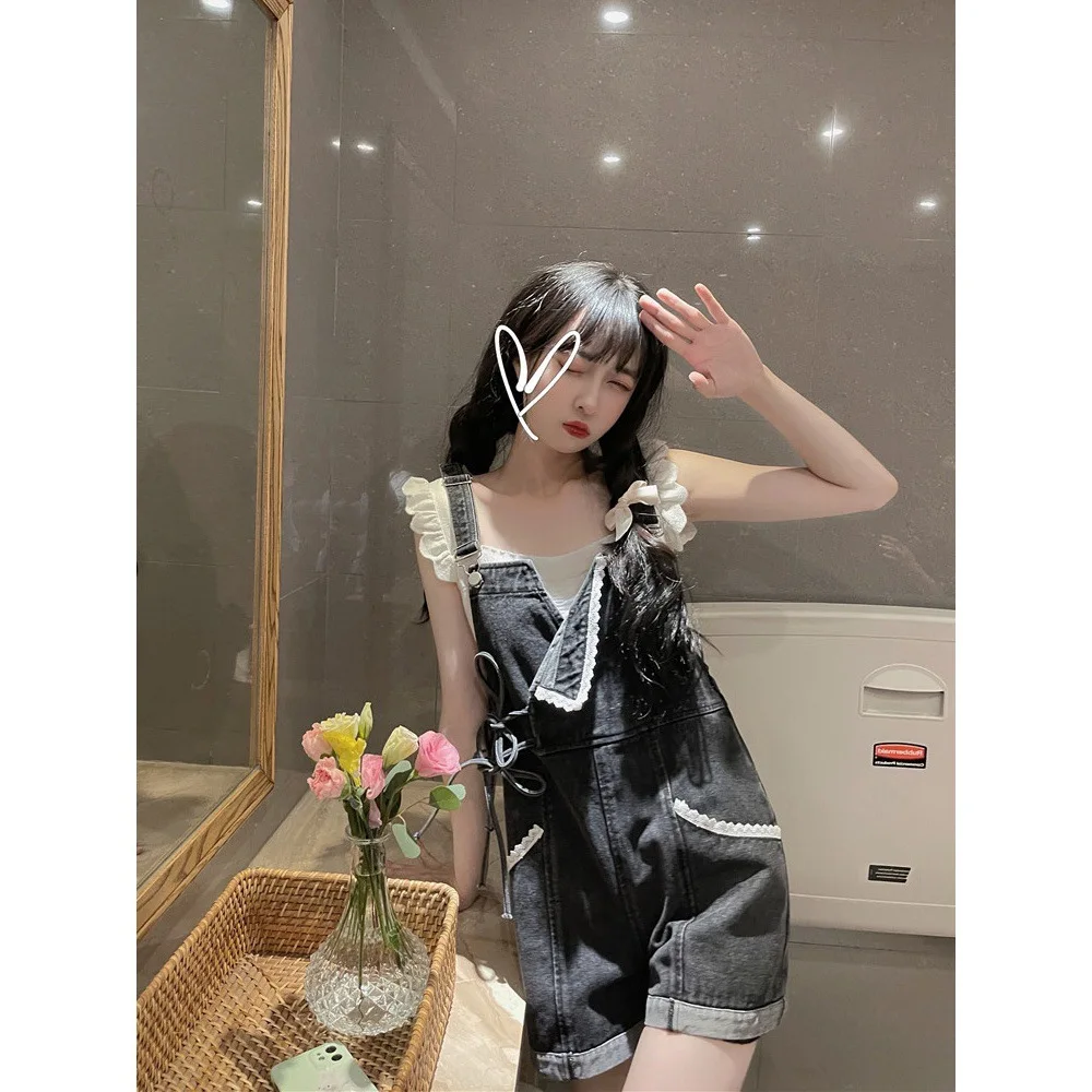 Suspenders For Women Summer Denim Shorts Korean Style Wide Leg Jeans Pants Light Blue High Waisted Baggy Casual Fashion Shorts