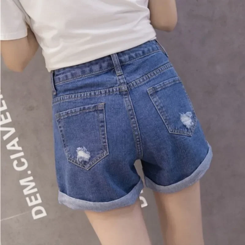 New Women Hollow Out Cuffed Denim Shorts Summer Vintage High Waist Wide Leg Jeans Shorts Spring Fashion Chic Student Hot Pants