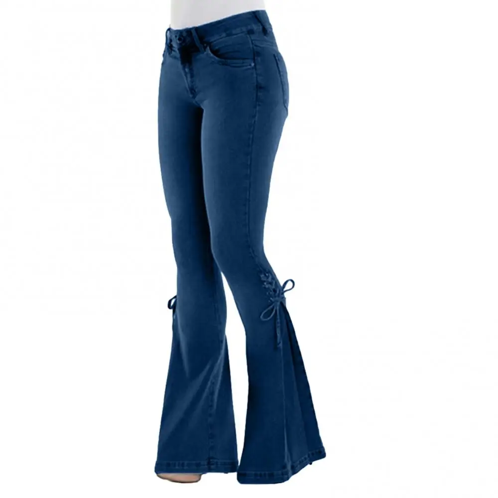 Women Flared Jeans High Waist Denim Pants Vintage Lace Up Bow Skinny Pants Plus Size Wide Leg Casual Women Trousers Streetwear