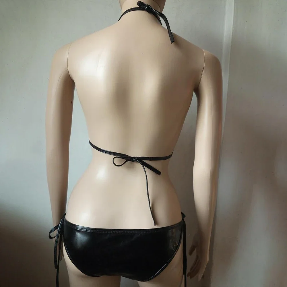 Women's Bra Set Bra Set G-String Mini Bikini Low Rise Lingerie Sexy Thong Shiny Side Tie Swimwear Breathable Underwear Bra Set