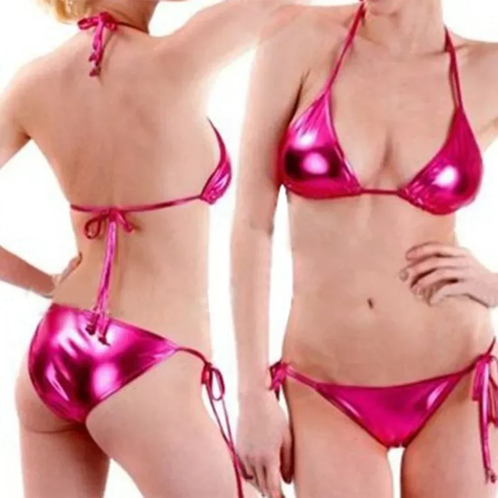 2pcs Summer Fashion Women's Bikinis Set Swimwear Sexy Halter Bras Tops Lace-Up Low Waist Briefs Ladies Swimsuits