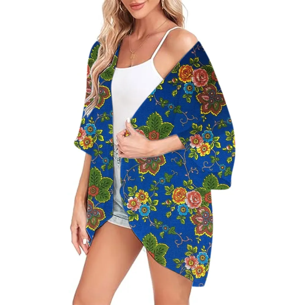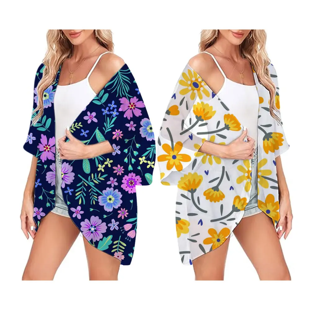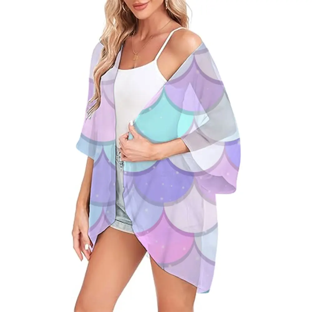 Summer Fashion Kimono Chiffon Swimsuit Cover Up Capes Rainbow Stripes Printed Hawaii Streetwear Short Sleeve Tops Cardigan Shirt