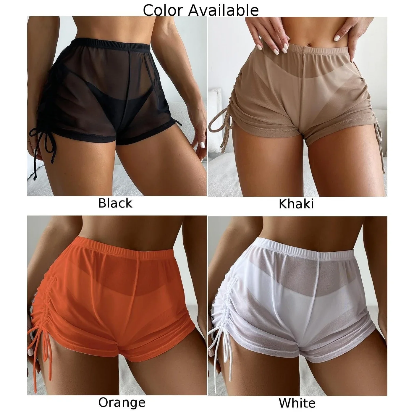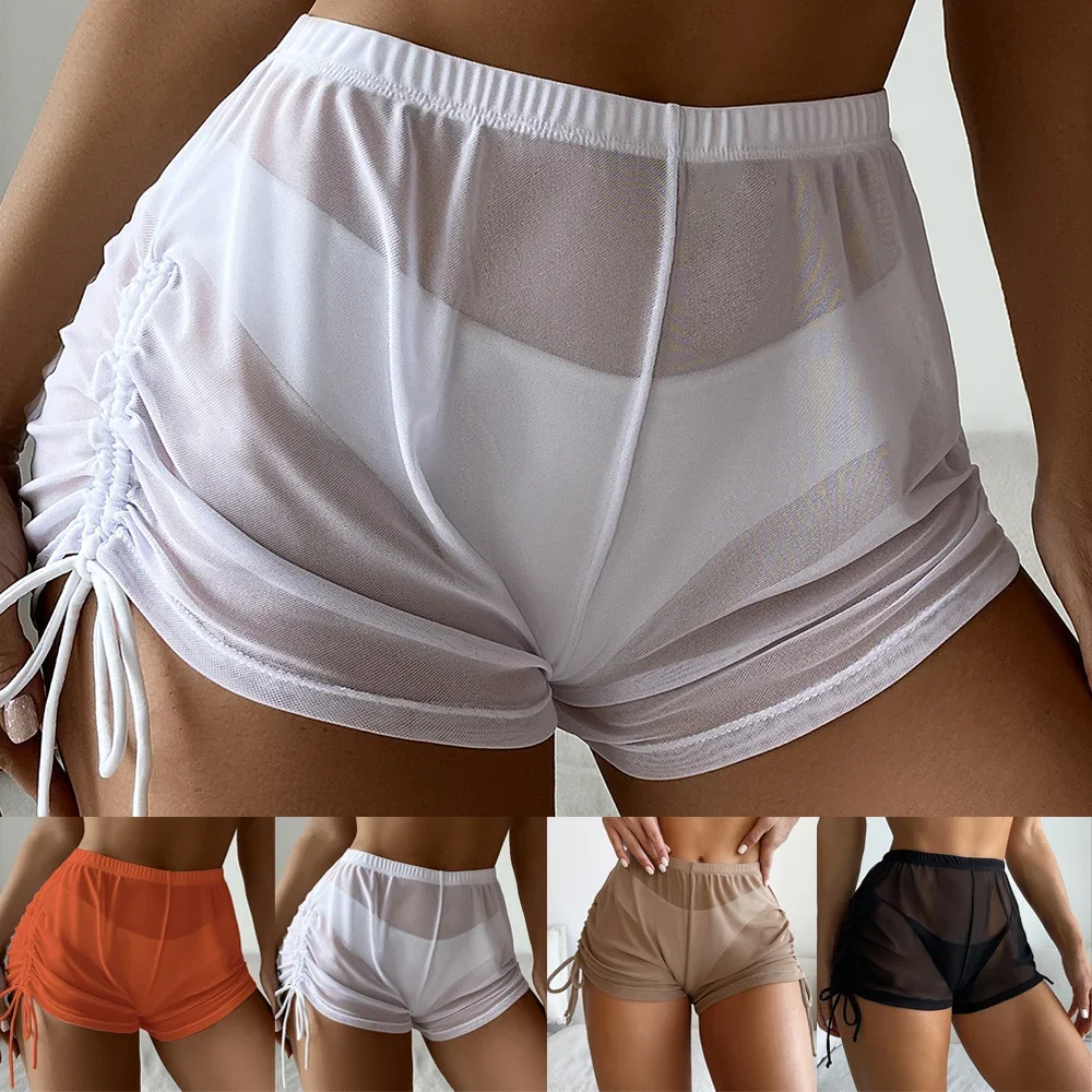 Women Swim Shorts Sports Summer Beach High Waist Bikini Transparent Drawstring Swimsuit Tankini Bottoms Shorts