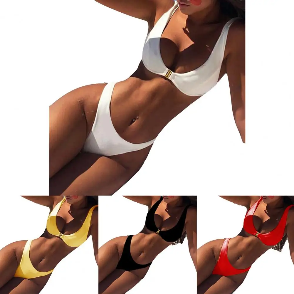 Name | 2 Pcs/Set Sexy Women Swimwear Alloy Bathing Suit Eye-catching Three Points Durable Bikini Set |