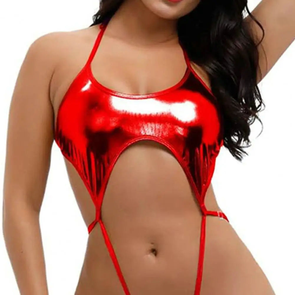Name | Sexy Halter Sleeveless Monokini Glossy Surface Straps Connection Backless Belly Hollow One-piece Bikini Swimsuit Beachwear |
