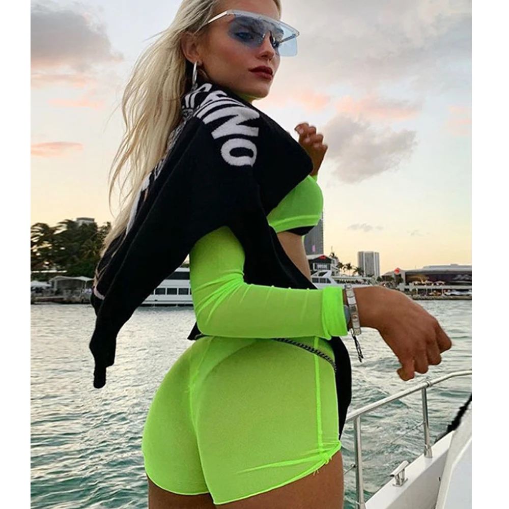 Women Beach Fishnet Mesh Cover Up Swimsuit Beachwear Women Crop Tops Tee See Through Long Sleeves T-shirt Cover Up