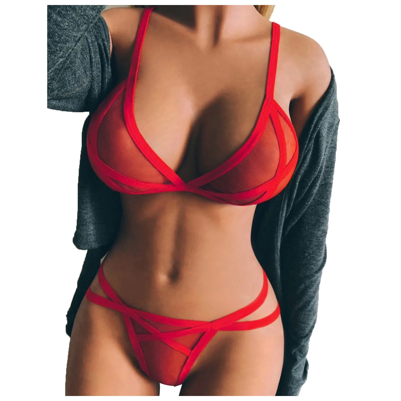 Sexy Bralette Mesh Sexy Mesh Lingerie Sets Cup Wire Free Underwear Set Women Bra Set Porno Erotic Lingerie Bikinis Mujer