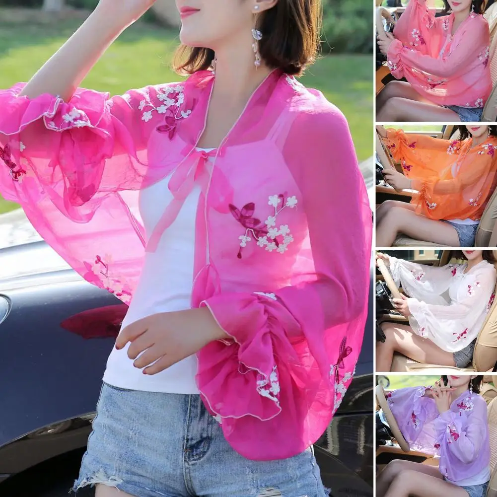 Women Swimwear Cover Up Beach Shawl Floral Pattern Sun Protection Ladies Embroidery Flower Coat Beachwear cover-ups
