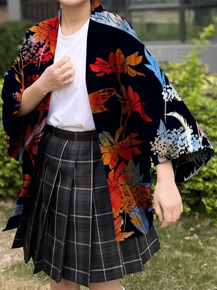Summer Women's Floral Pattern Kimono Men's Fashion Beach Hawaiian Shirt Fashion Cardigan Summer Holiday Pattern Kimono Yukata