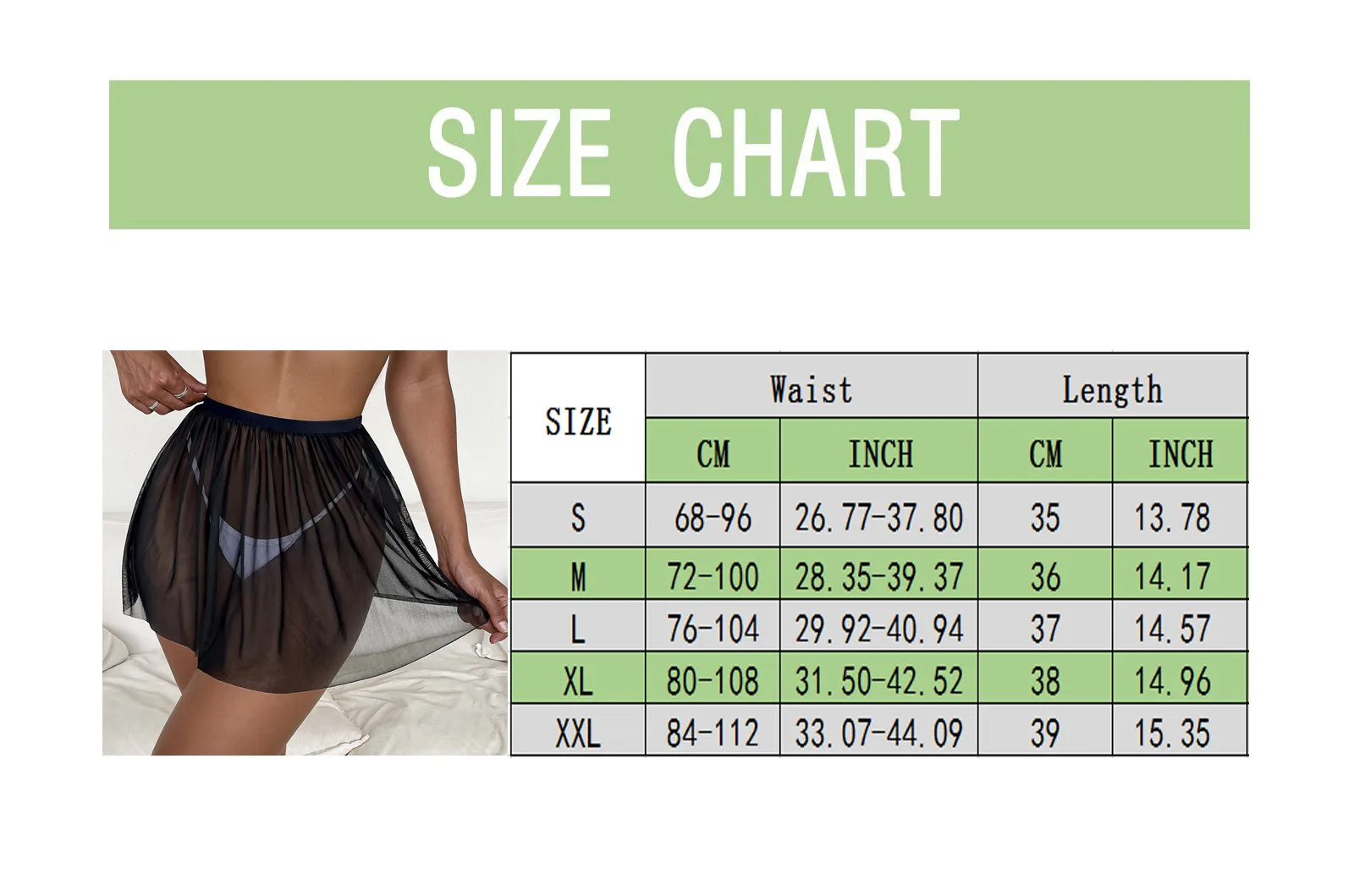 Women's Sheer Mesh Translucent Cover Ups Skirts Beach Cover Ups Solid Color Elastic Waist Casual Swimwears Cover-Ups For Female