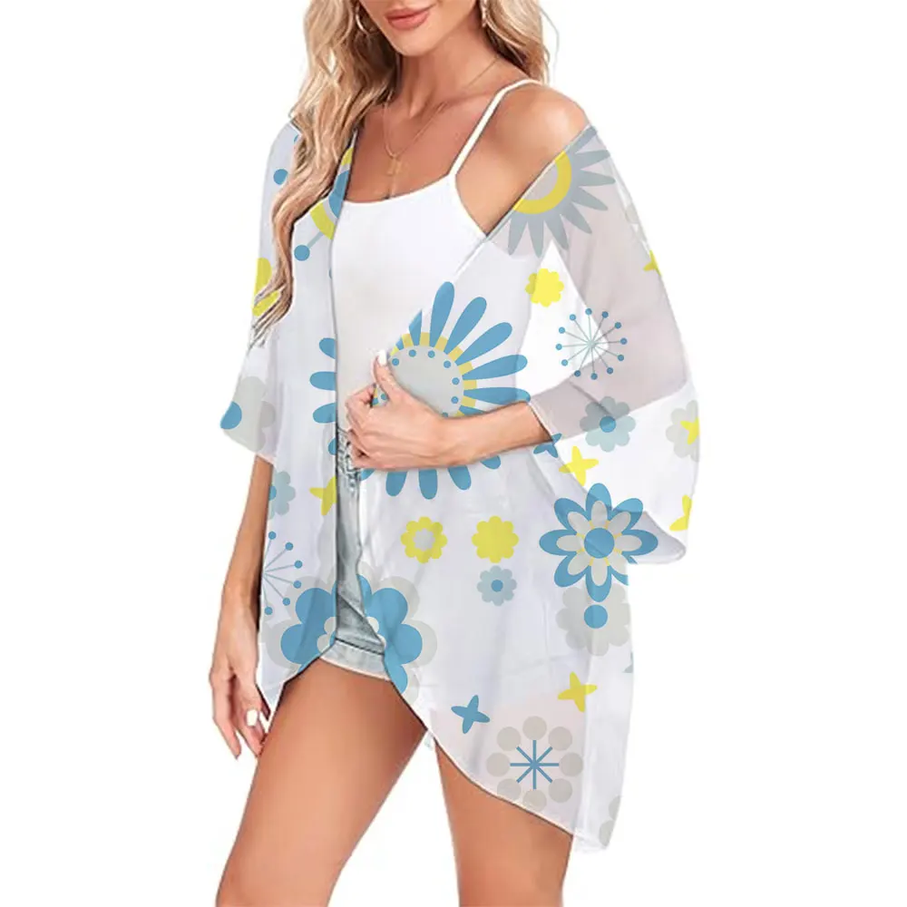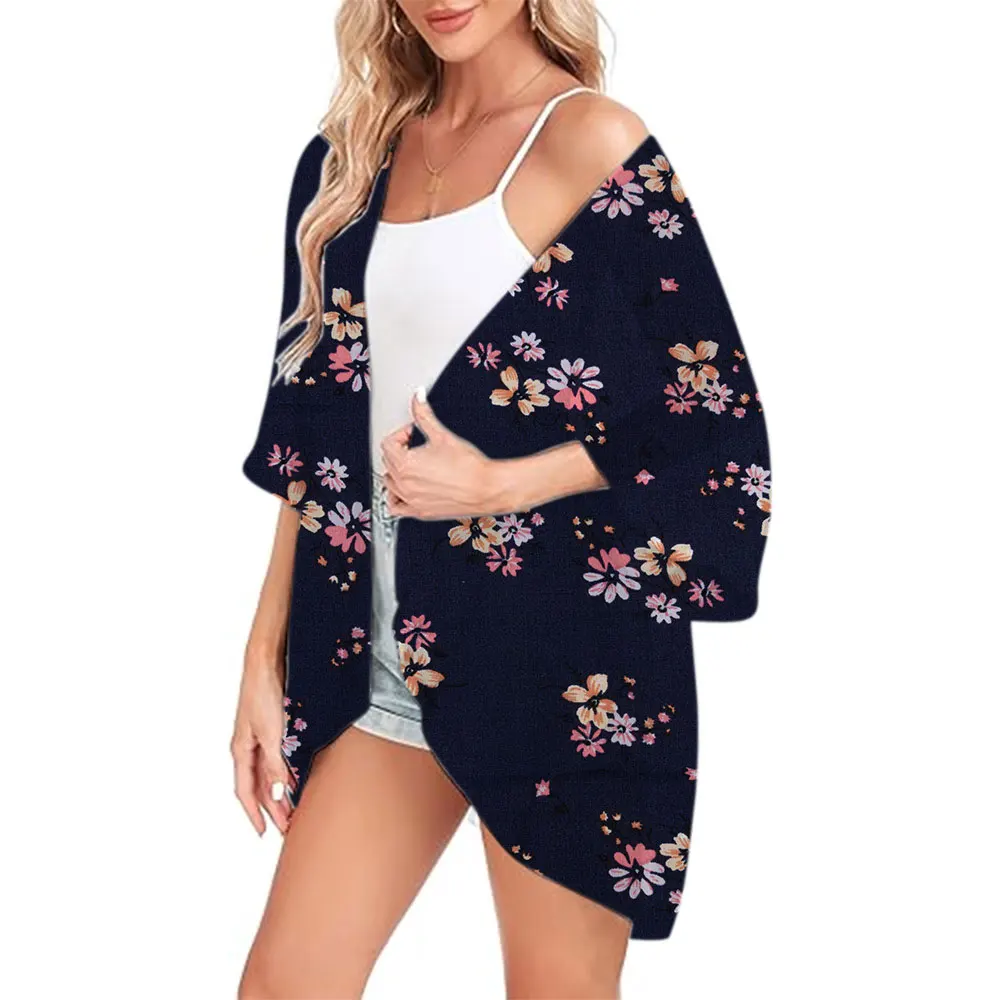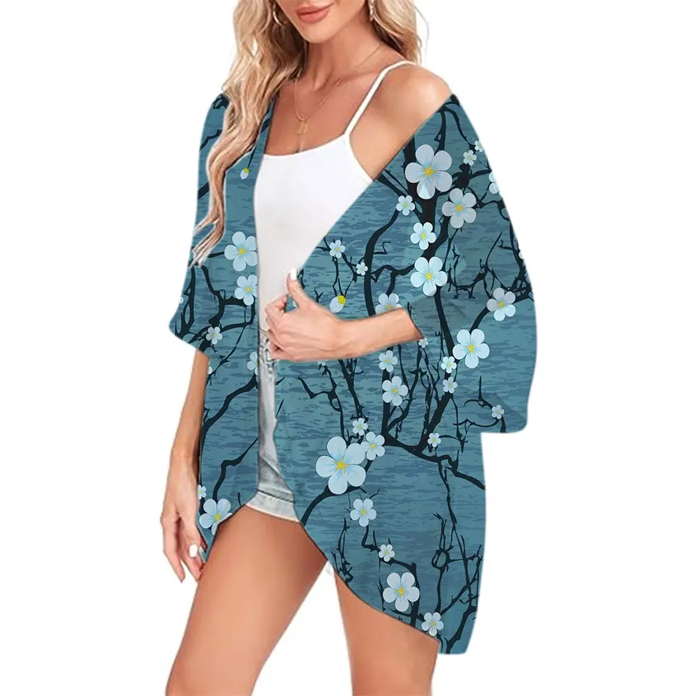 Women's Beach Bikini Swimsuit Elegant Boho Style Summer 2024 Beach Open Front Tops Oversized Vintage Kimono Cardigan Shirts Coat