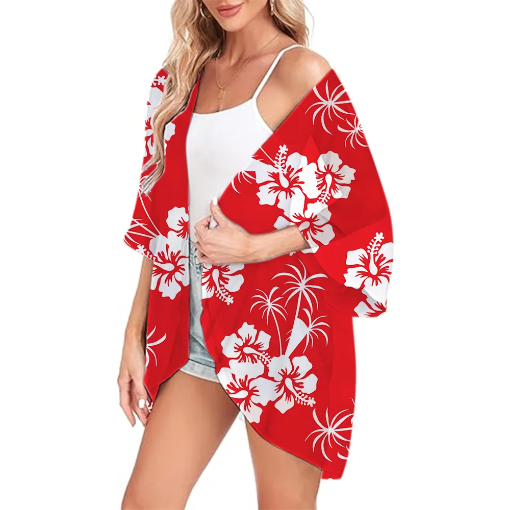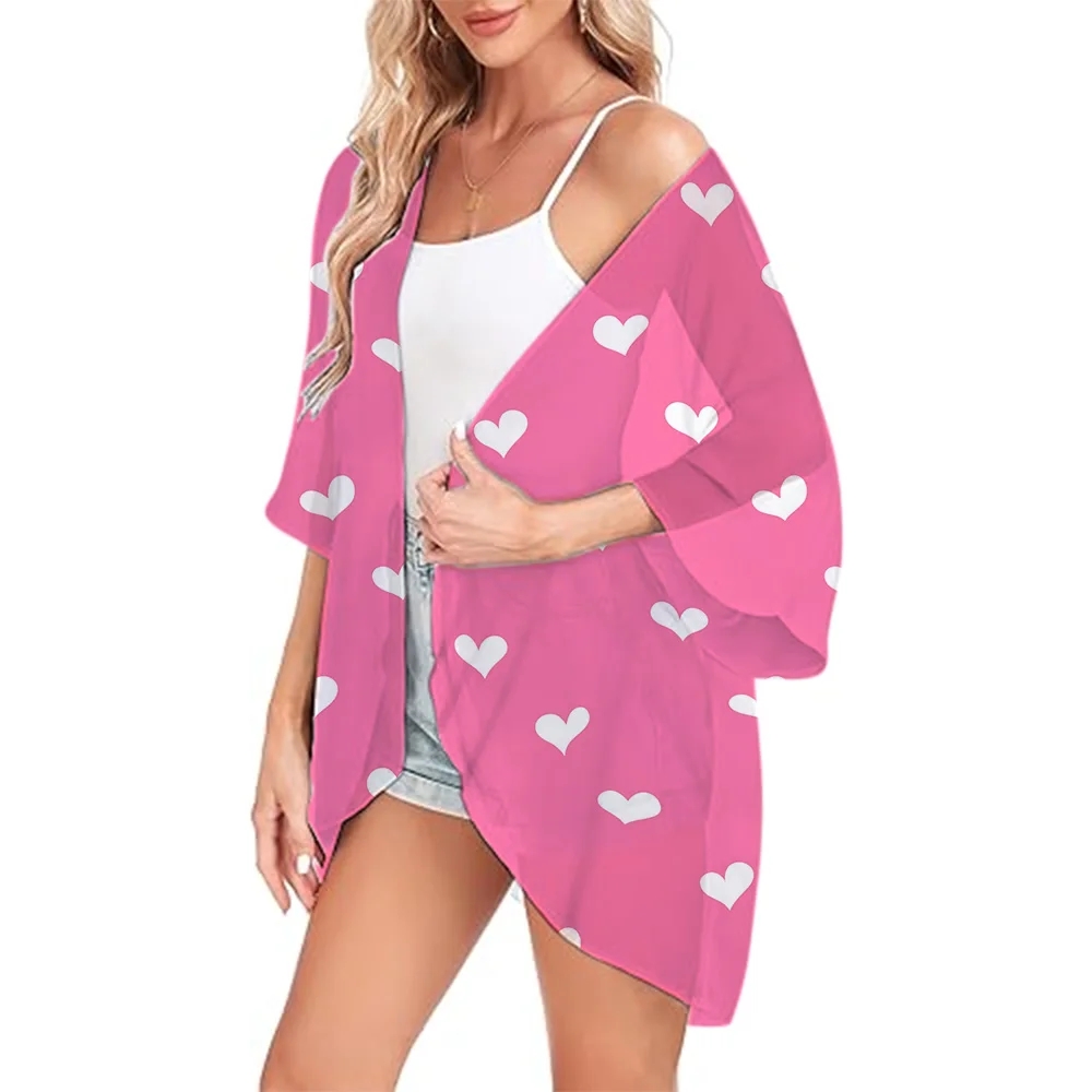 Women's Kimono Cardigans Cover Ups Pink Printed Chiffon Loose Open Front Casual Summer Tops Sexy Kimono Beach Swimwear Coats
