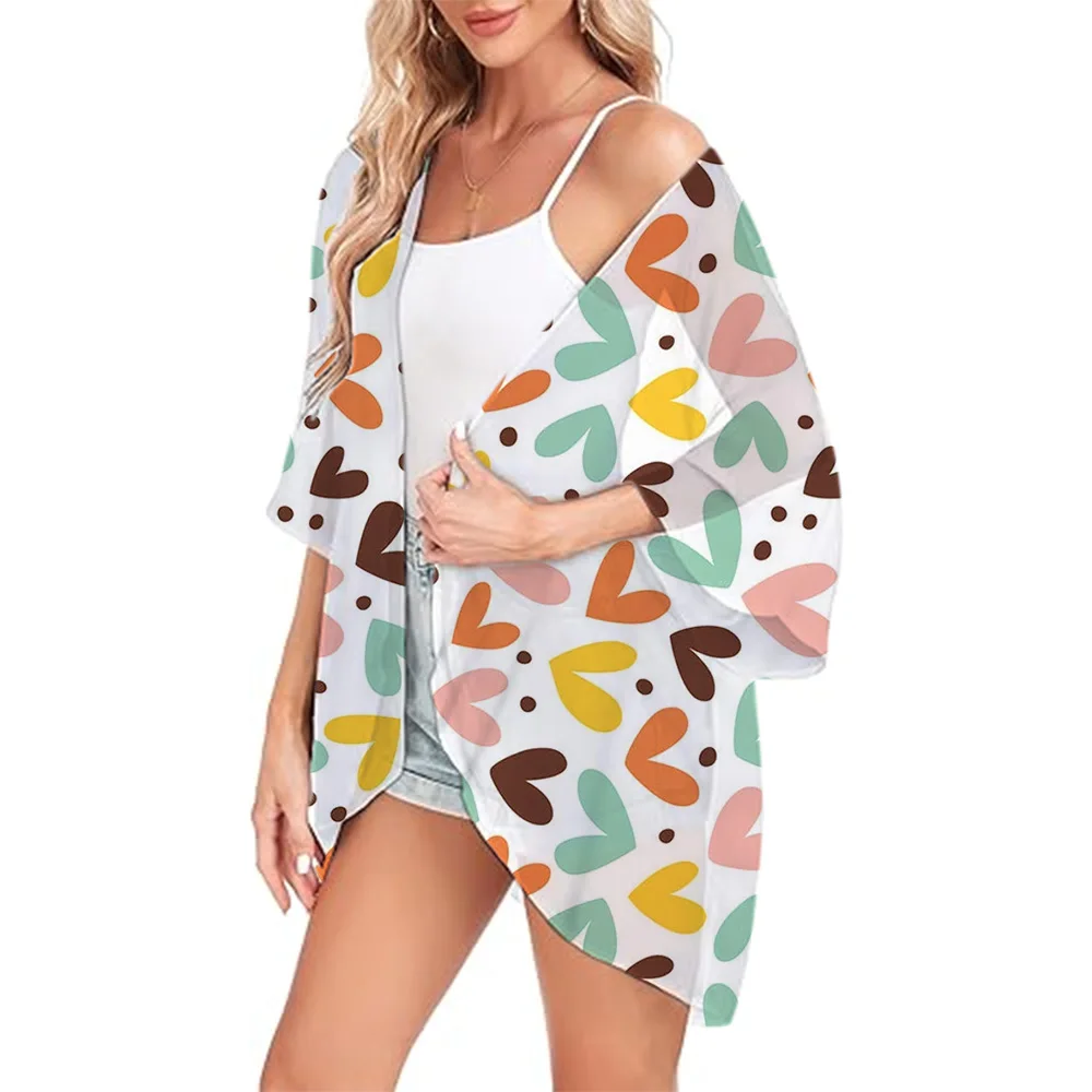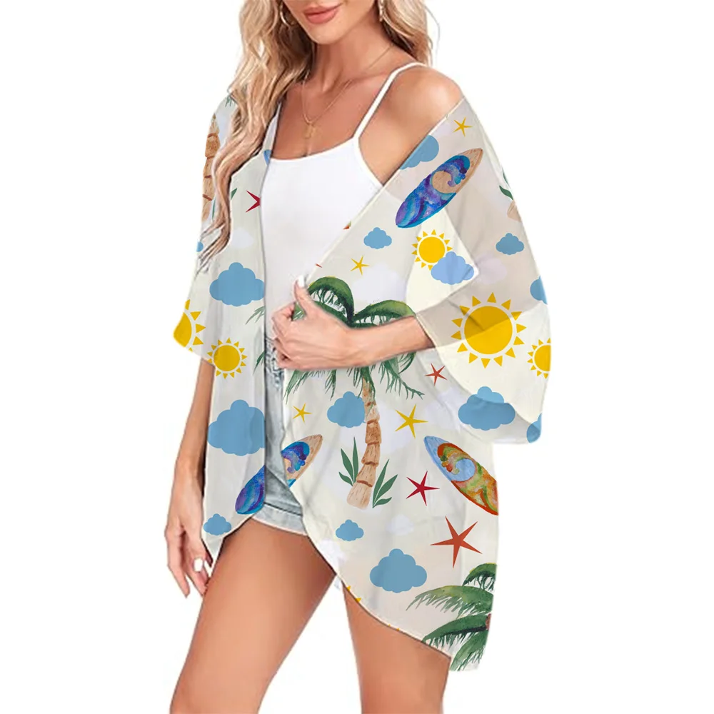 Lemono Printed Women's Boho Style Kimono Swimwear Chiffon Cover-ups Fashion Light & Thin Kimono Blouse Beach Cardigan Summer