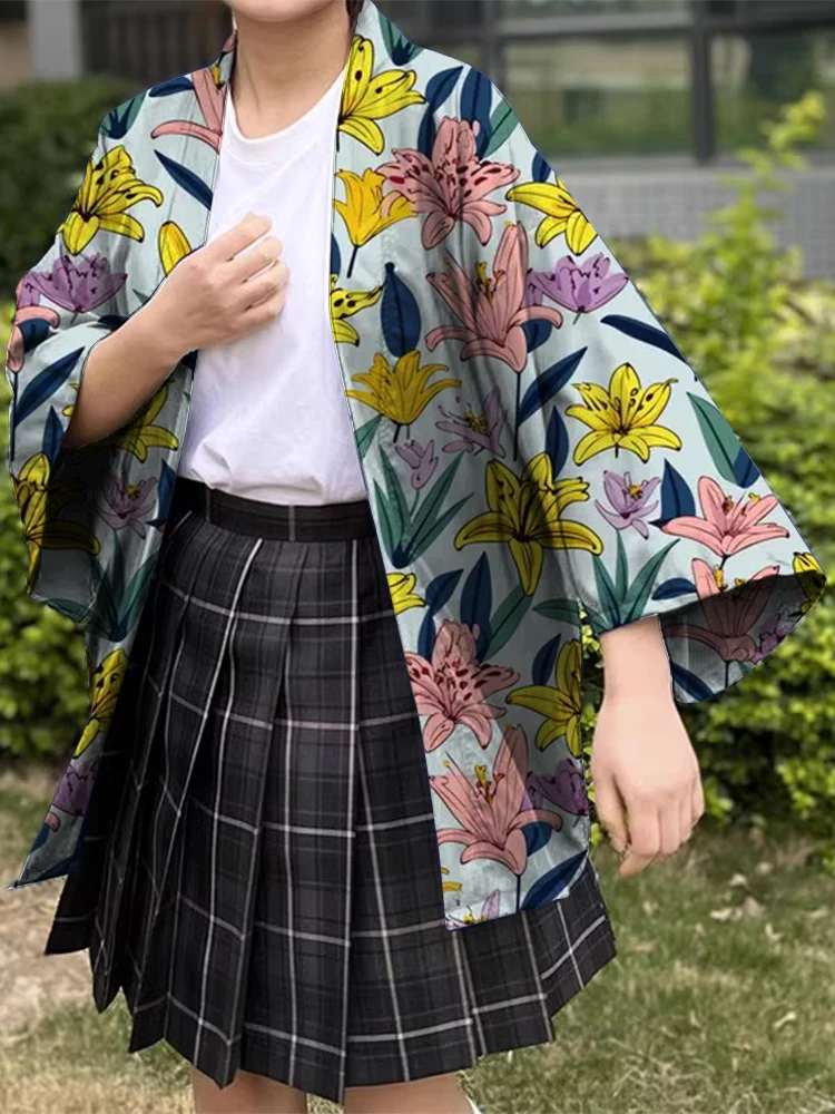Beach Holiday Sun Cardigan Japanese Traditional Printed Kimono Summer Holiday Casual Kimono Cardigan Fabric Soft Comfortable
