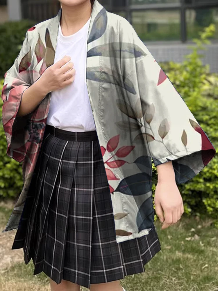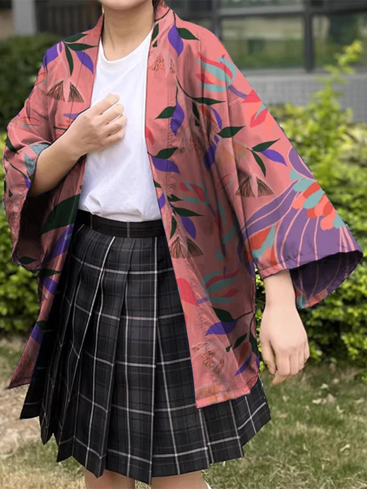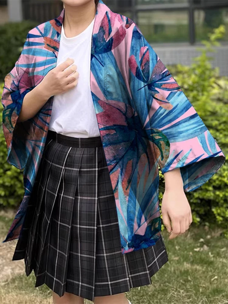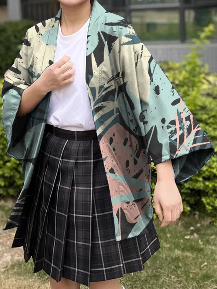 Men's And Women's Japanese Kimono, Tropical Floral, 3D Printed Jacket, Green Traditional Haori Cardigan, Casual Japanese Beachwe