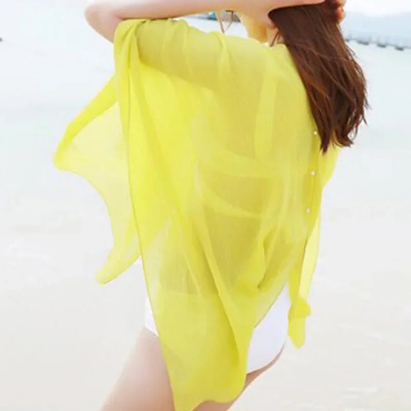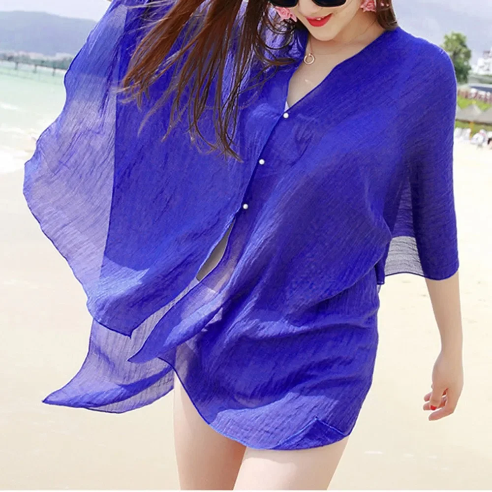 Women Sexy Summer Beach Bikini Swimwear Cover Up Solid Color See Through Long Style Swim Cover Ups Female Clothing