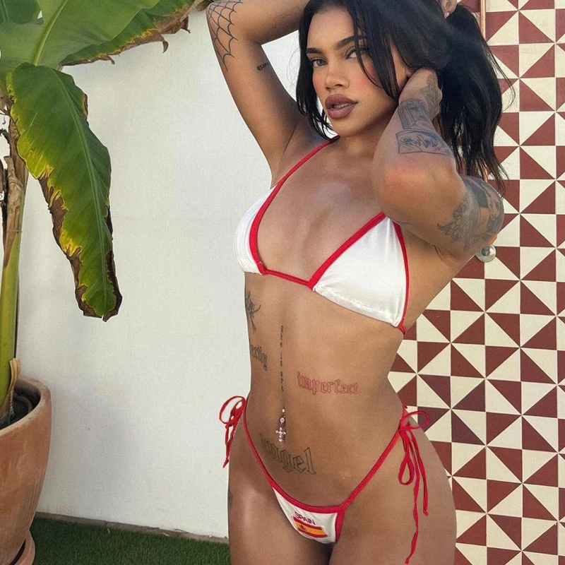 Women's Summer Sexy 2 Piece Bikinis Sets Spain White Halter Bras And Tie-up Low Waist Thong Clothing Beach Hanging Neck Swimsuit